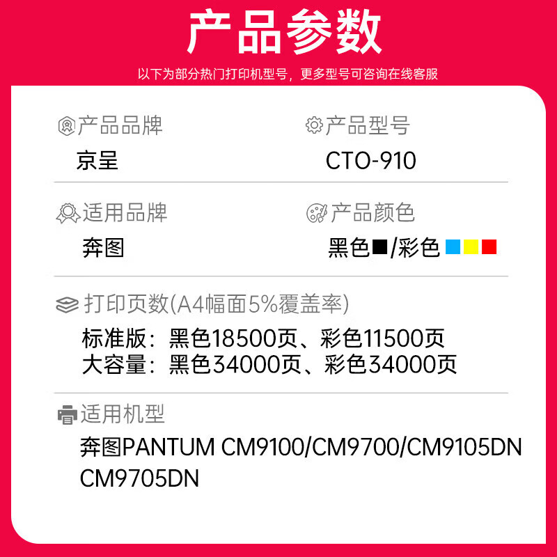 • 商品名称:京呈CTO-910粉盒适用奔图CM9100 CM9700 CM9105DN CM9705DN打印机CDO-910再生四色感光鼓套装 CTO-910/套
