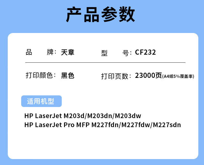 商品名称: 新绿天章cf232a成像鼓 适用惠普HP m227fdw硒鼓M203dw M227d M227fdn/sdn打印机hp32a 232a硒鼓 230a粉盒带芯片 硒鼓/支