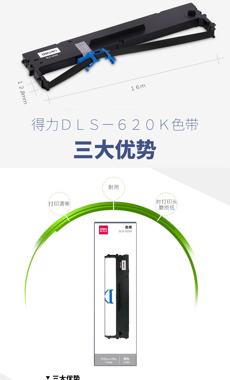 • 商品名称:得力(deli)DLS-620K 针式打印机黑色色带(适用DE-620K、DE-628K、DL-625K、DL-930K) DLS-620K/只