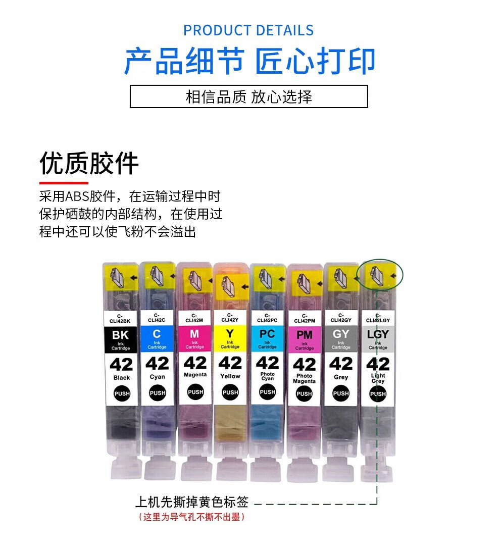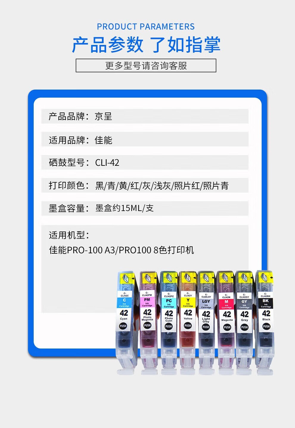 • 商品名称:京呈CLI-42墨盒适用佳能PRO-100 A3 PRO100 8色打印机填充墨水盒 【15ml*8】 CLI-42 八色原装墨盒套装 CLI-42BK/套