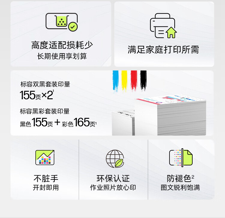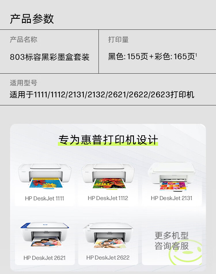 包装清单: 惠普803黑色经济适用墨盒*1、803 彩色墨盒*1