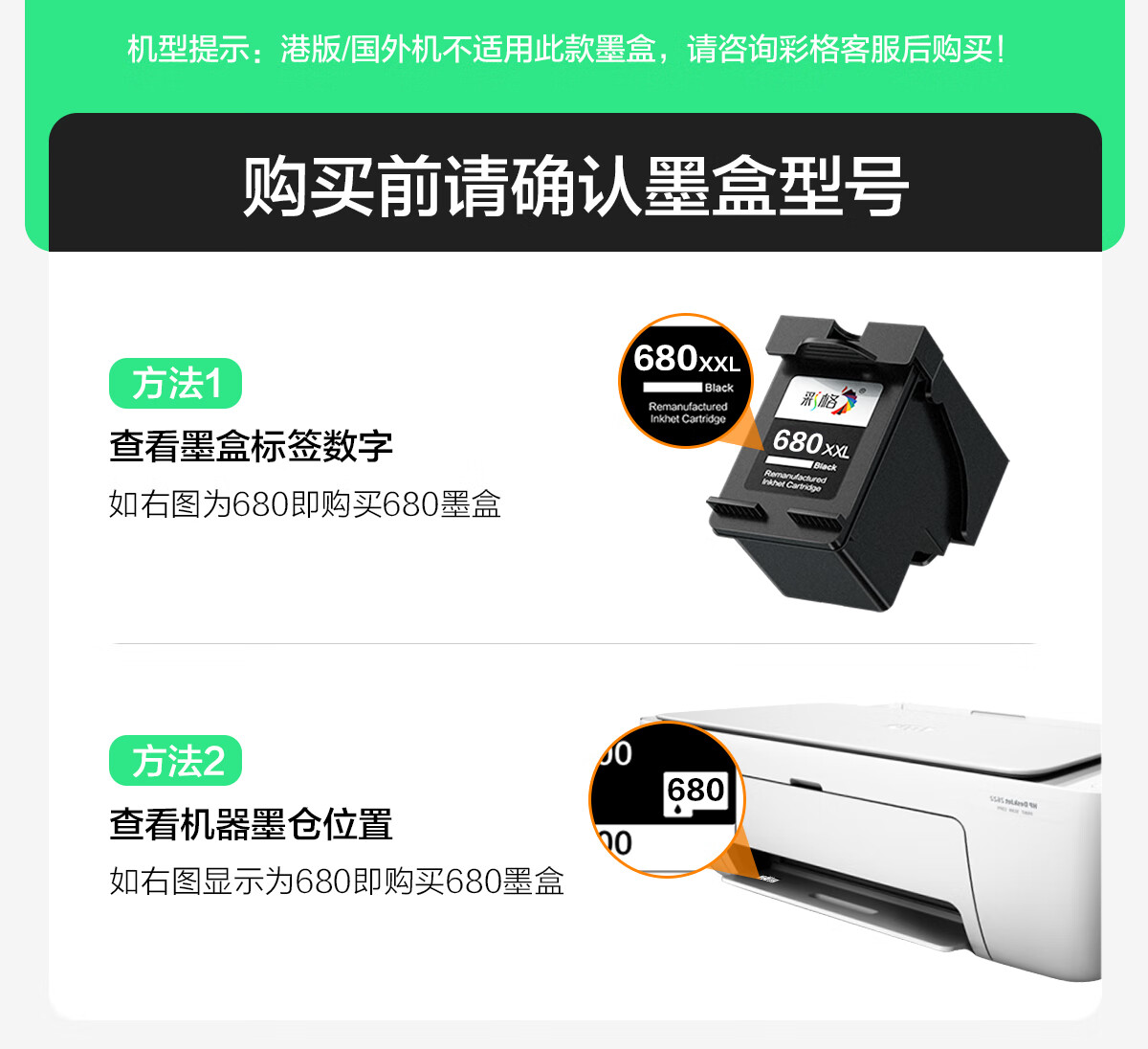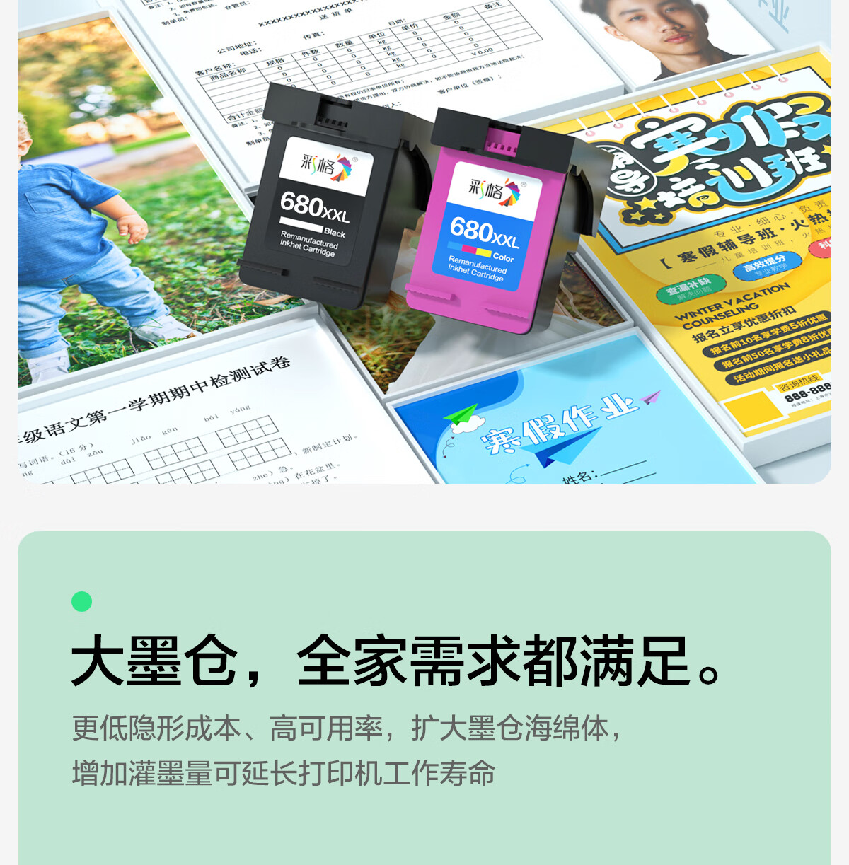 电脑、办公  > 办公耗材  > 墨盒  >  彩格  >  彩格适用惠普680墨盒可加墨 惠普HP 1118 2138 3776 3777 3778 2676 2677 2678 3636 3638 4538 4678打印机 680XXL/盒