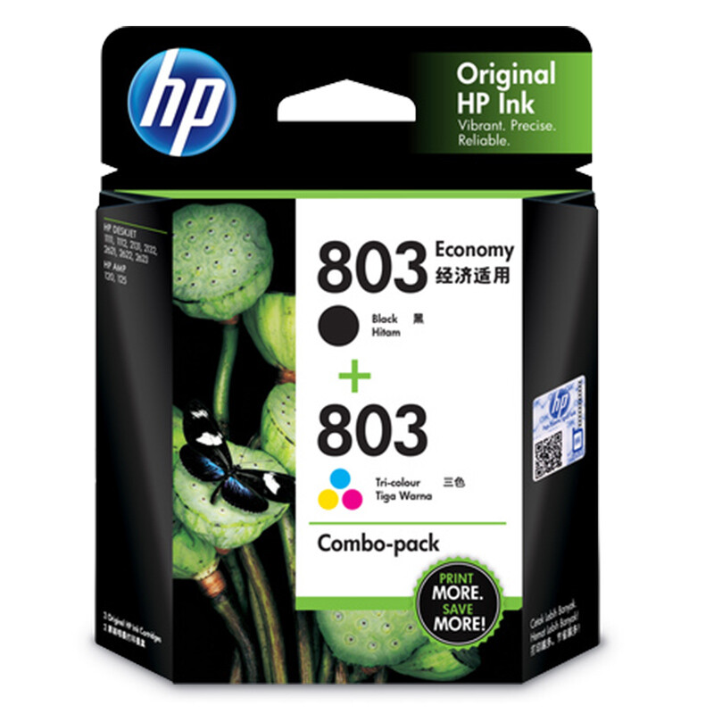包装清单: 惠普803黑色经济适用墨盒*1、803 彩色墨盒*1
