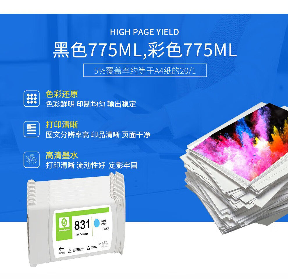 • 商品名称:京呈831红色墨盒适用于惠普HP Latex 310 330 360大幅面绘图仪再生打印机墨盒 831墨盒/支
