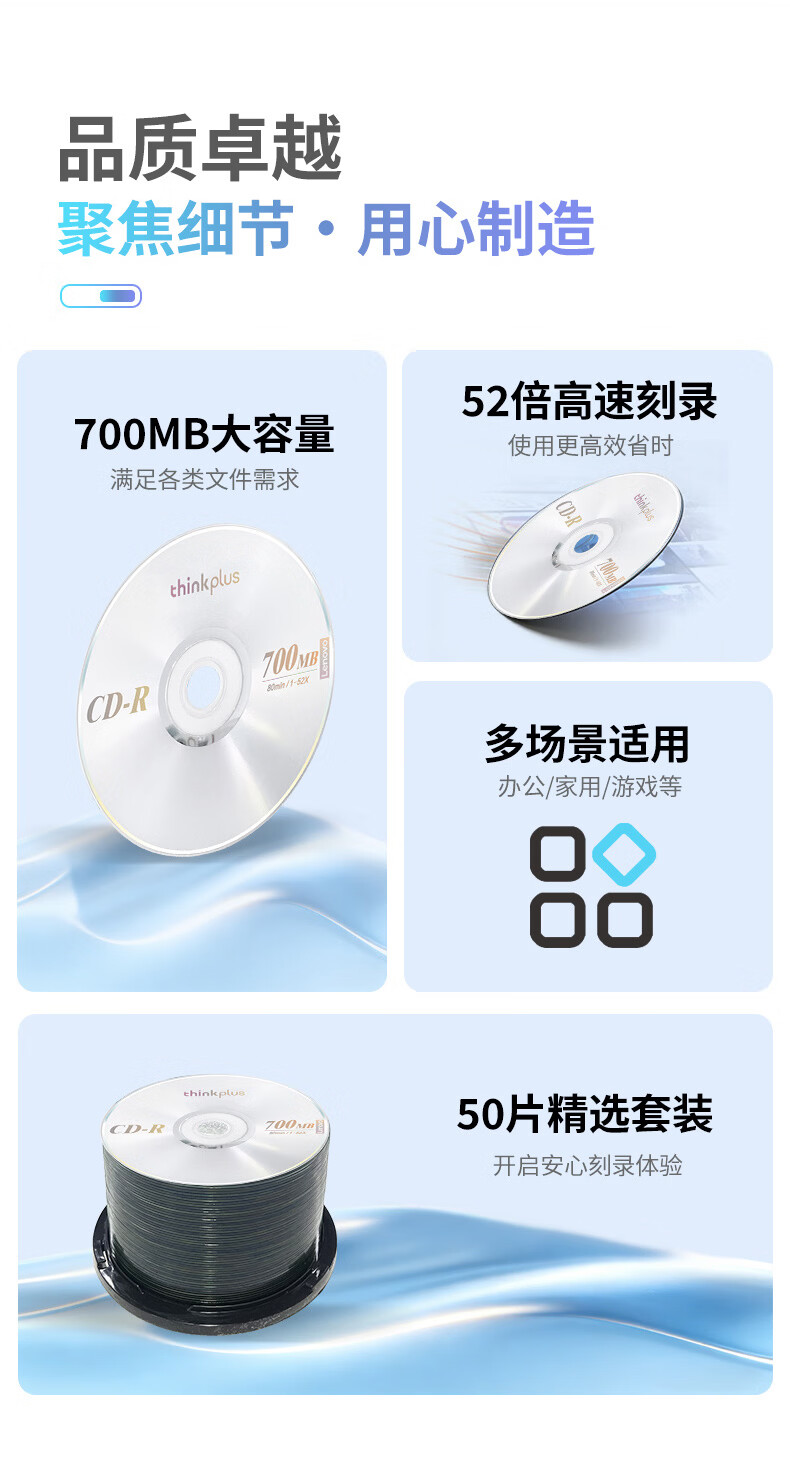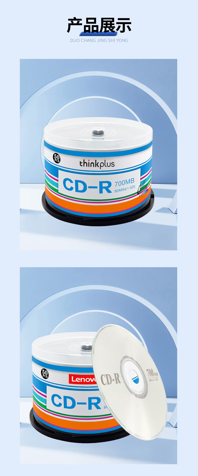 电脑、办公  > 办公耗材  > 刻录碟片  >  联想/ThinkBook  >  联想(Lenovo)CD-R 光盘/刻录盘 52速700MB 办公系列 桶装50片 空白光盘 CD-R/桶