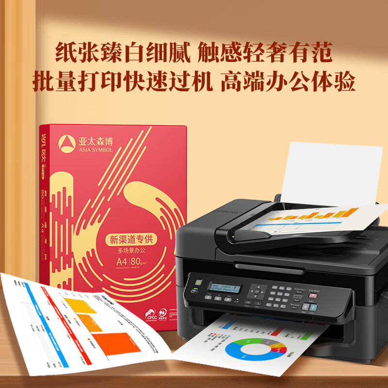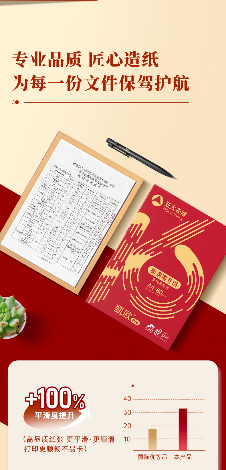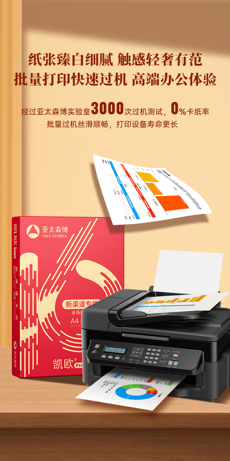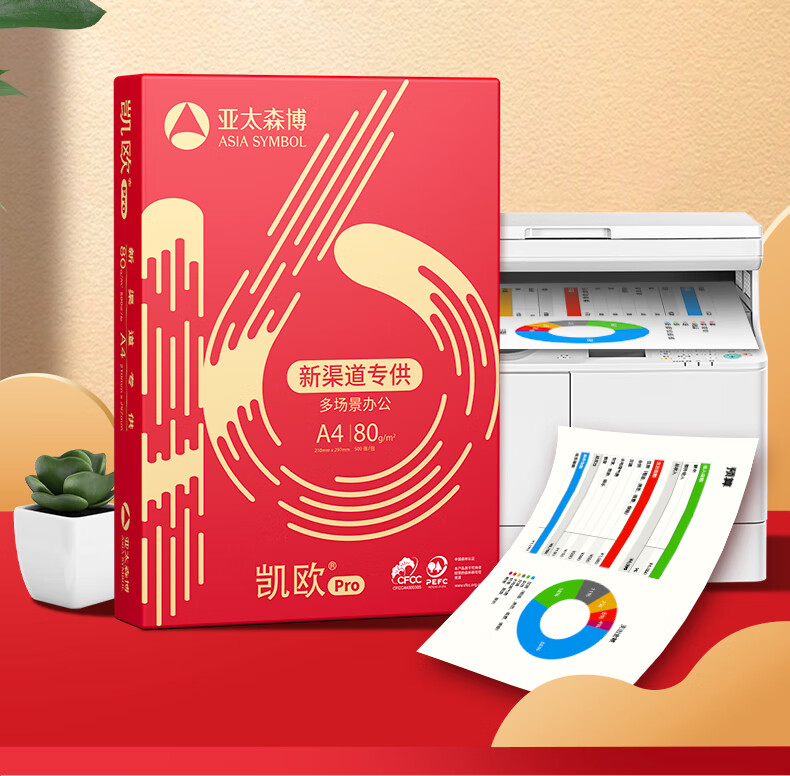 电脑、办公  > 办公耗材  > 纸类  >  亚太森博  >  亚太森博 凯欧Pro 80g A4复印纸 500张/包 5包/箱(2500张)高端商务品质 合同标书彩打 A4 80g/箱