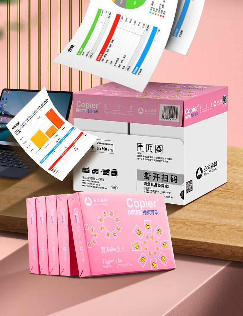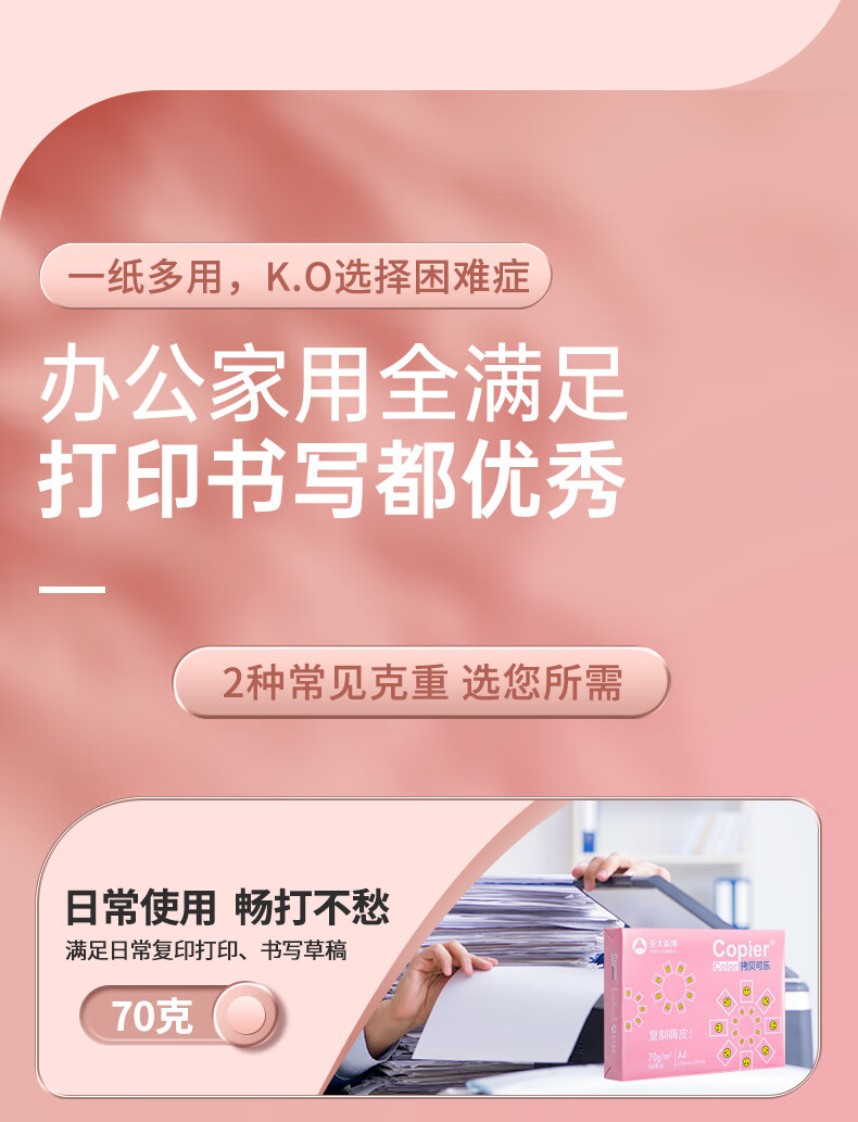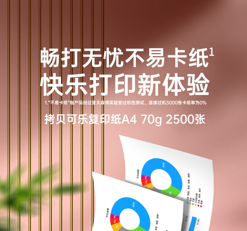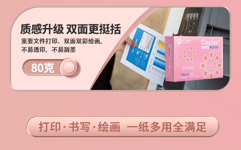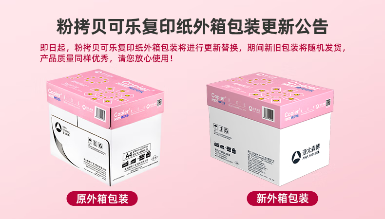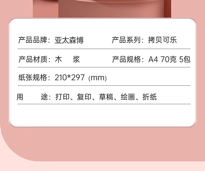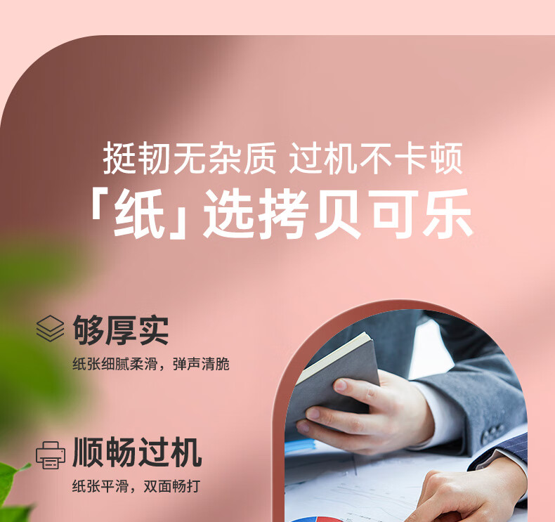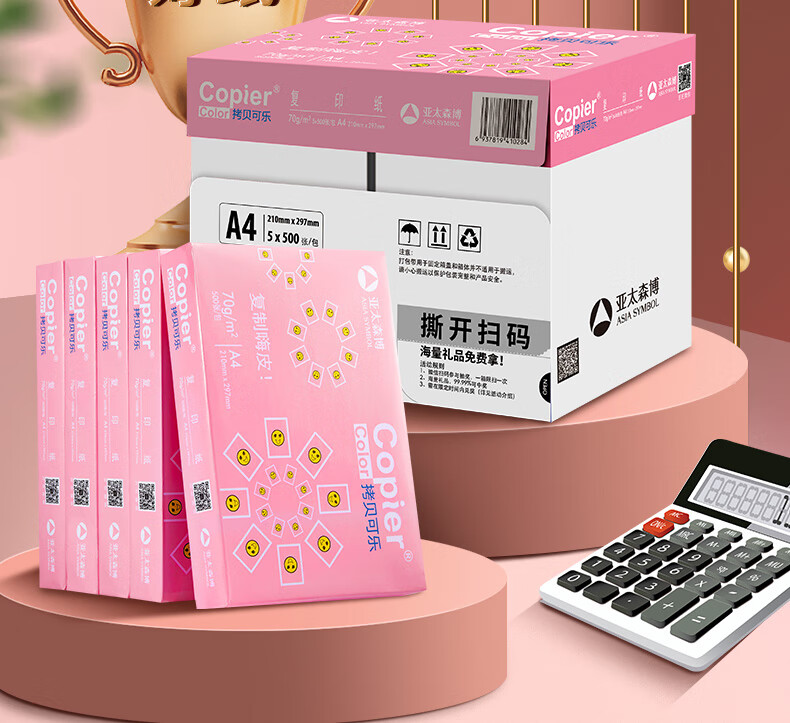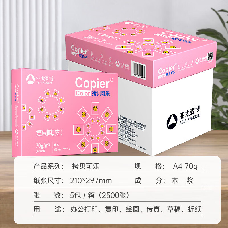 电脑、办公  > 办公耗材  > 纸类  >  亚太森博  >  亚太森博拷贝可乐A4打印纸 70g 500张*5包 双面打印不透印 字迹清晰 复印纸 整箱2500张【专业造纸厂牌】 粉拷贝可乐70g A4 5包/箱/箱