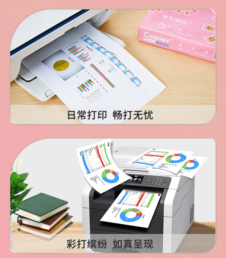 亚太森博拷贝可乐A4打印纸 70g 500张*5包 双面打印不透印 字迹清晰 复印纸 整箱2500张【专业造纸厂牌】 粉拷贝可乐70g A4 5包/箱/箱