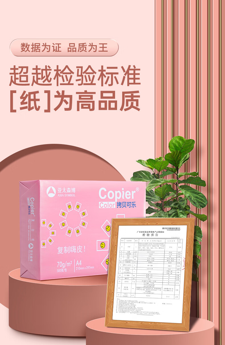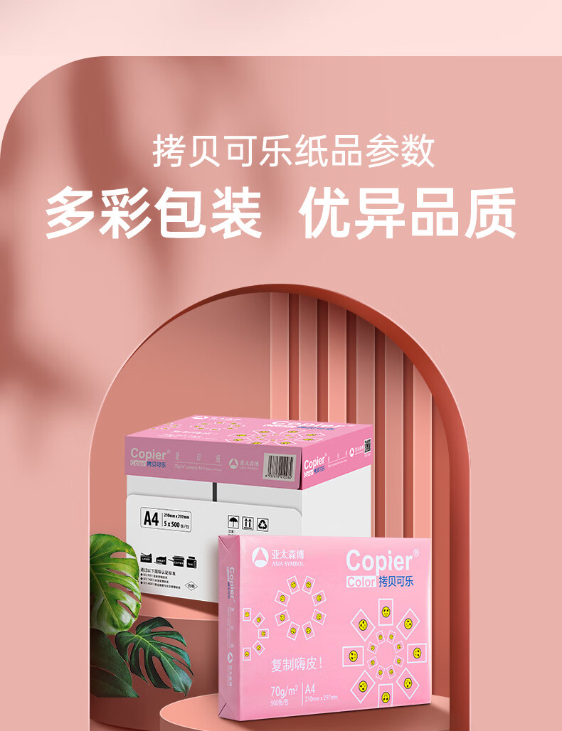 • 商品名称:亚太森博拷贝可乐A4打印纸 70g 500张*5包 双面打印不透印 字迹清晰 复印纸 整箱2500张【专业造纸厂牌】 粉拷贝可乐70g A4 5包/箱/箱
