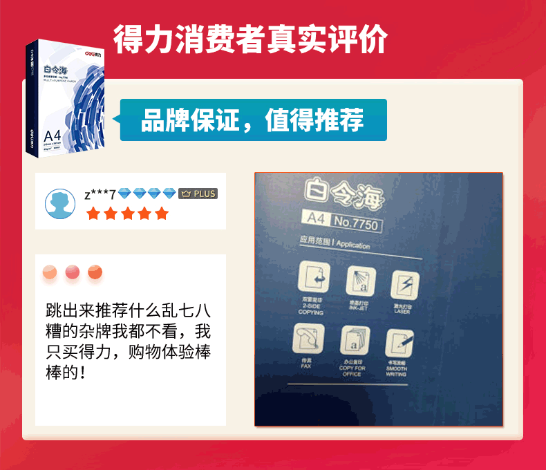 商品名称: 得力(deli)白令海A4打印纸 80g500张*8包一箱 双面加厚 高性价比复印纸 整箱4000张【经济热销】 7765/箱