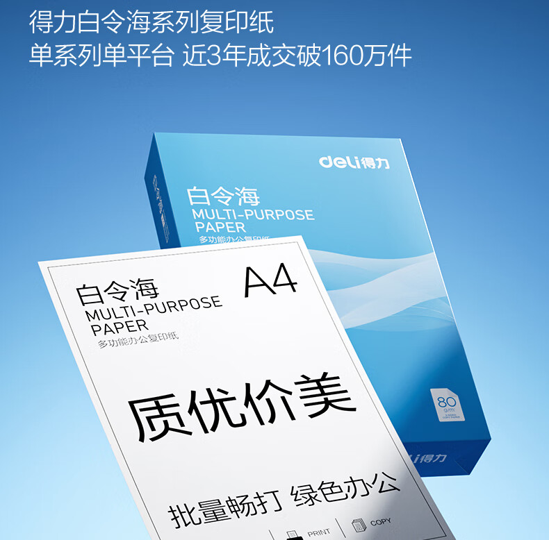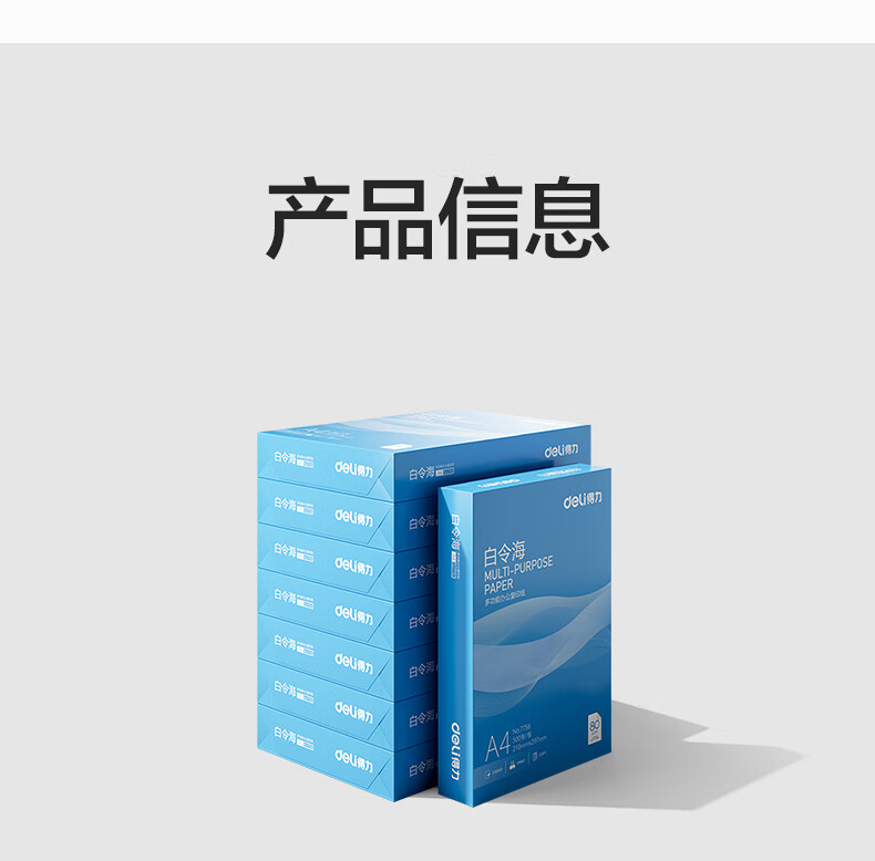 • 商品名称:得力(deli)白令海A4打印纸 80g500张*8包一箱 双面加厚 高性价比复印纸 整箱4000张【经济热销】 7765/箱
