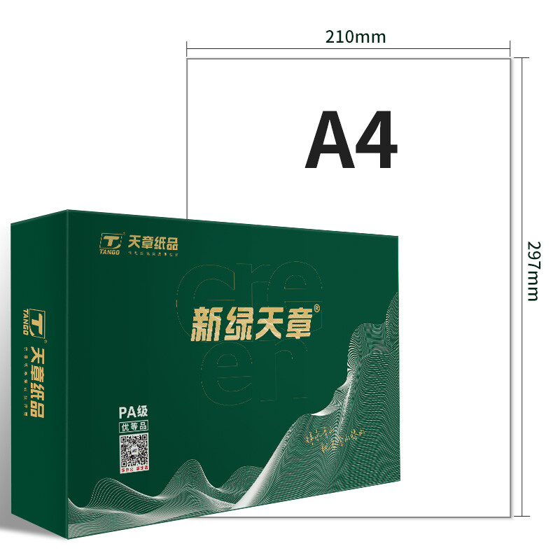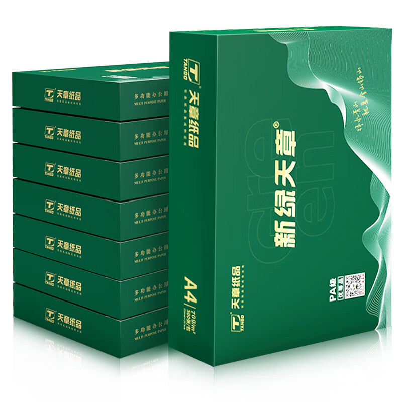 电脑、办公  > 办公耗材  > 纸类  >  天章 /TANGO  >  天章 (TANGO)新绿商务A4打印纸 70g 500张*8包 双面打印复印纸 纸张洁白顺滑畅打 整箱4000张【合同标书款】 新绿天章商务款70gA4 8包/箱