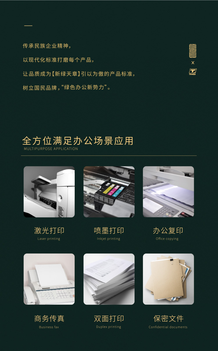 天章 (TANGO)新绿商务A4打印纸 70g 500张*8包 双面打印复印纸 纸张洁白顺滑畅打 整箱4000张【合同标书款】 新绿天章商务款70gA4 8包/箱