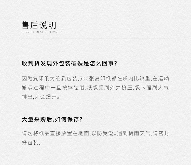 包装清单: A4纸 70g 500张*8包 共4000张/箱