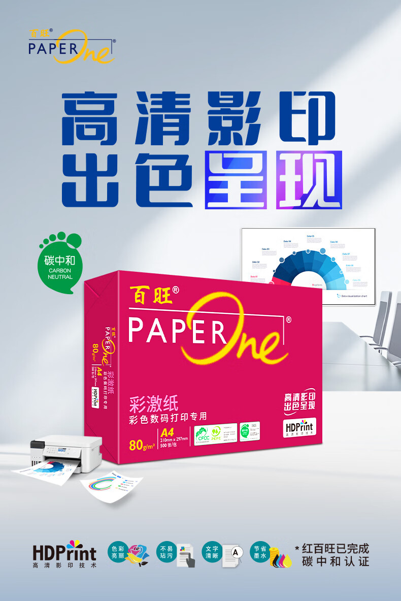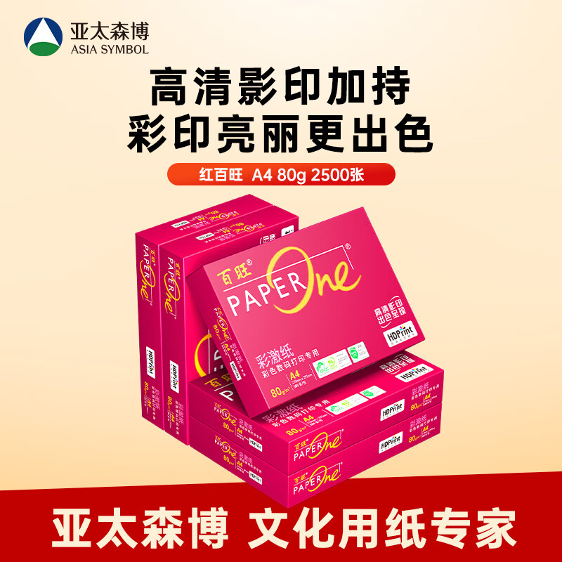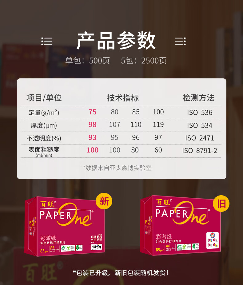 电脑、办公  > 办公耗材  > 纸类  >  百旺  >  百旺至尊款红百旺 A4打印纸 80g500张*5包 复印纸 高清影印技术 碳中和认证 2500张【专业造纸厂牌】 80g A4 5包/箱/箱