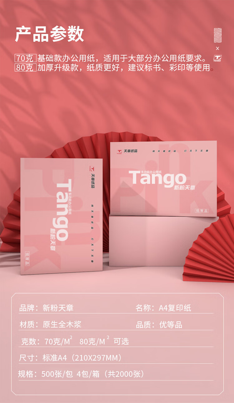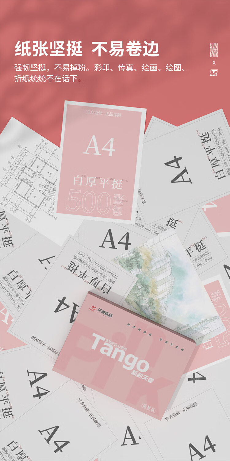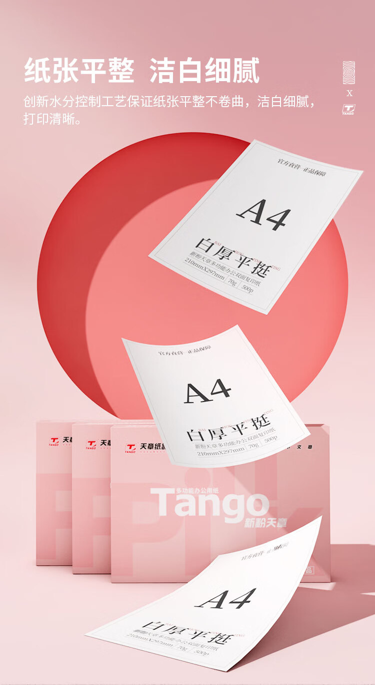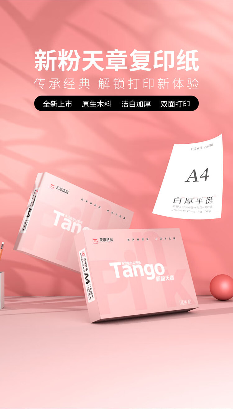 电脑、办公  > 办公耗材  > 纸类  >  天章 /TANGO  >  天章新粉天章A4纸打印纸 70g500张*4包一箱 白纸草稿纸 高性价比复印纸 整箱2000张【经济款】 A4/箱