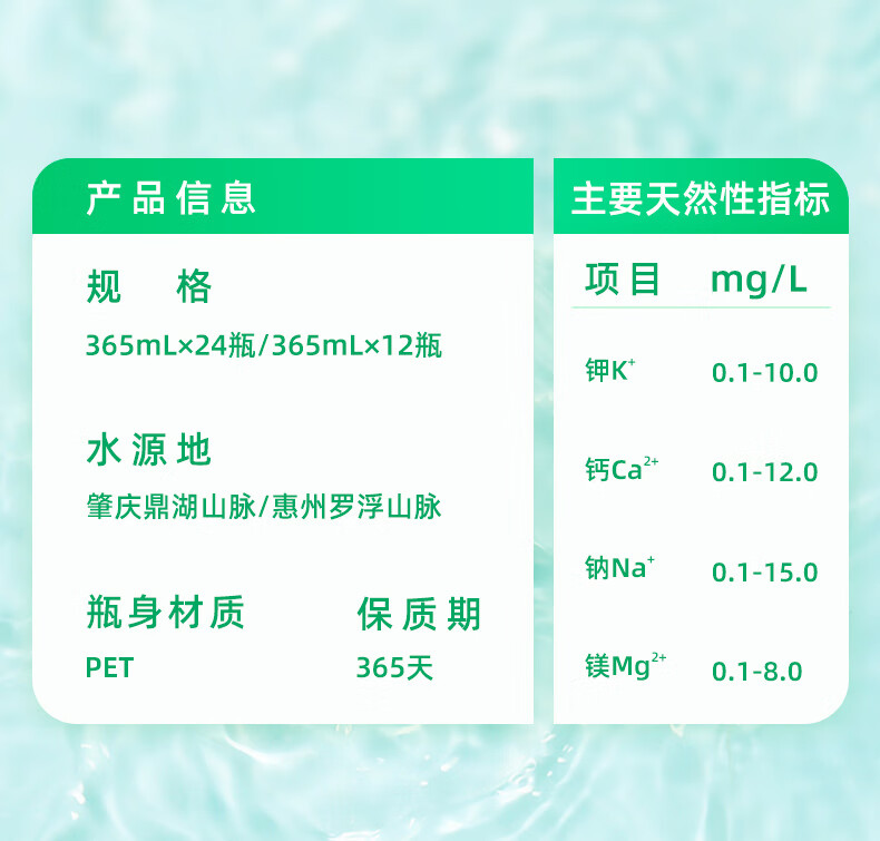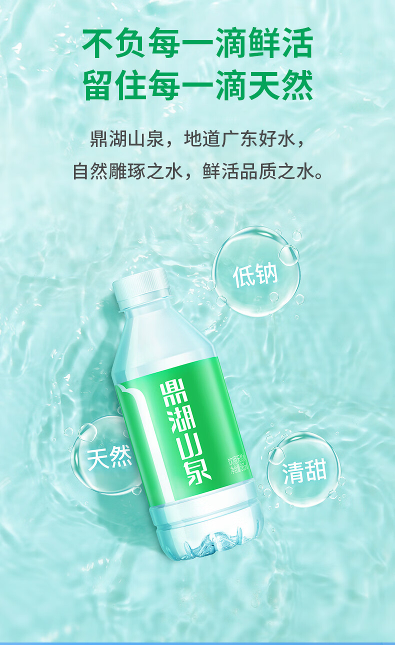 • 商品名称:鼎湖山泉饮用天然水 整箱装365ml*24瓶 清甜小瓶装水 365ml*24瓶/箱