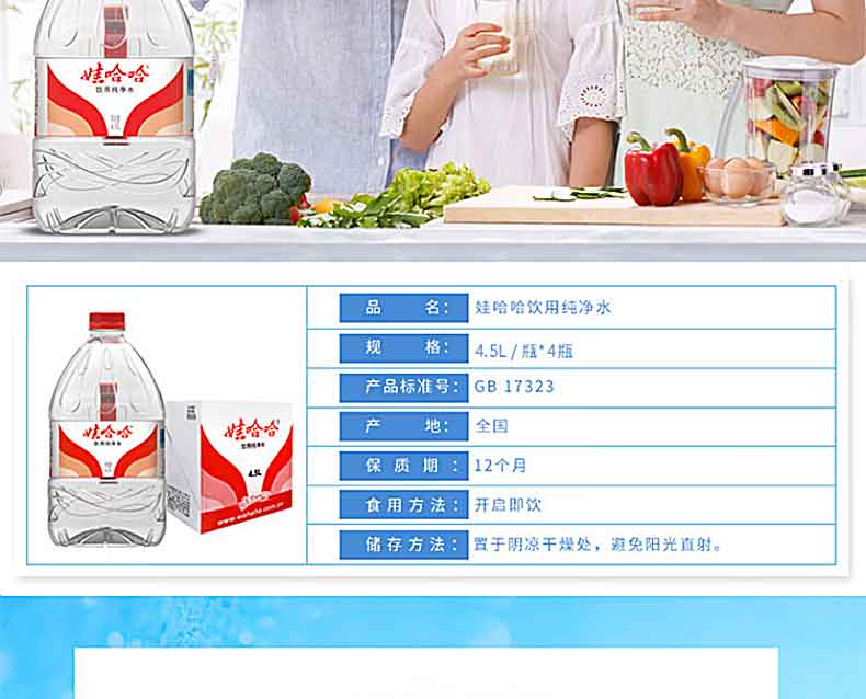 水饮冲调  > 饮用水  > 纯净水  >  娃哈哈  >  娃哈哈纯净水4.5L*4桶整箱【30箱套餐不支持拆分】科研泡茶办公会议水 4.5L/箱