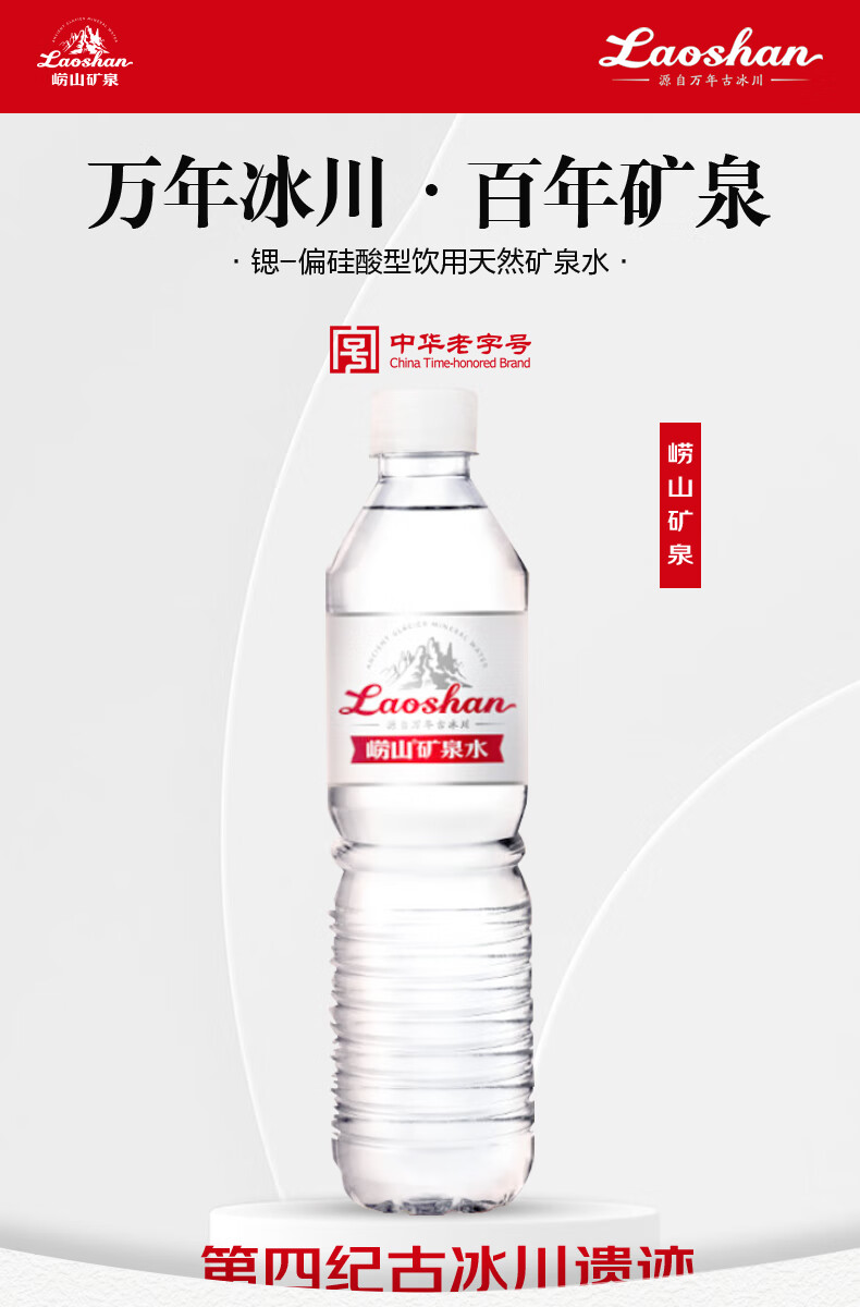 • 商品名称:崂山锶-偏硅酸型饮用天然矿泉水 会议家庭用水 600ml*24瓶 热门商品 600ml*24/箱
