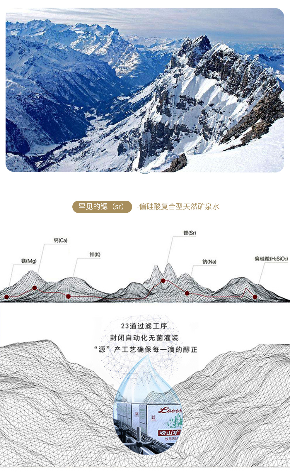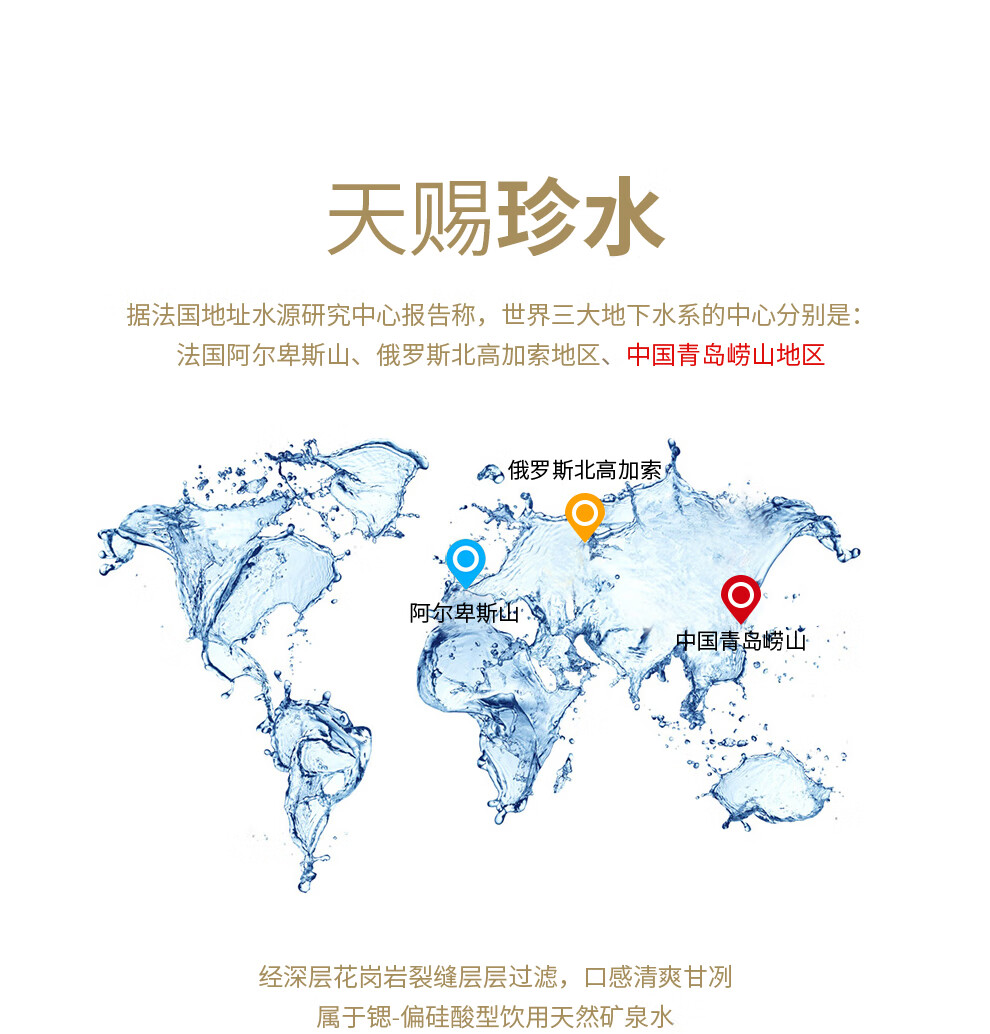 • 商品名称:崂山 中华老字号 锶-偏硅酸型饮用天然矿泉水 1.5L*12瓶 热门商品 矿泉水1.5L*12瓶/箱