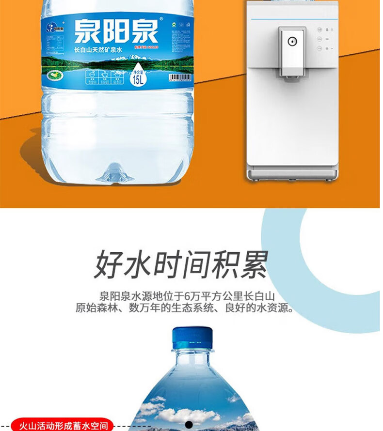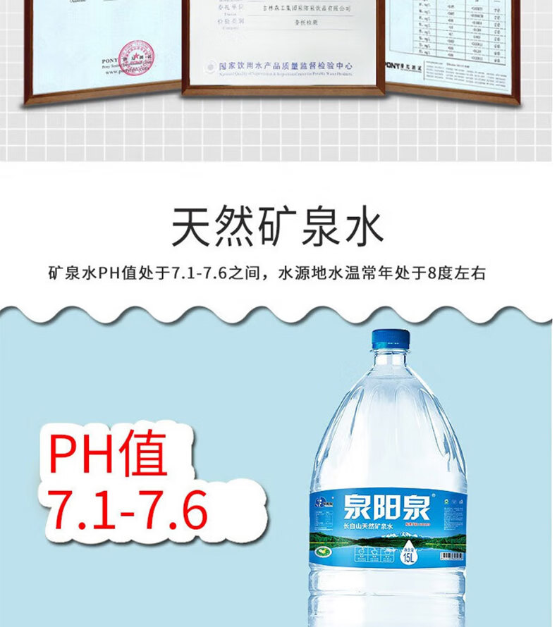 • 商品名称:泉阳泉长白山天然矿泉水饮用水15L大桶装可上饮水机弱碱性水 15L/桶