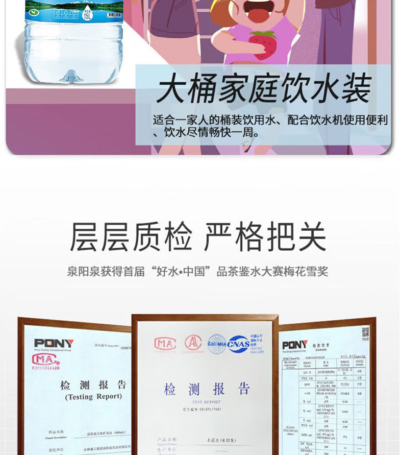 商品名称: 泉阳泉长白山天然矿泉水饮用水15L大桶装可上饮水机弱碱性水 15L/桶
