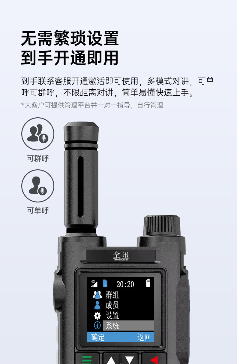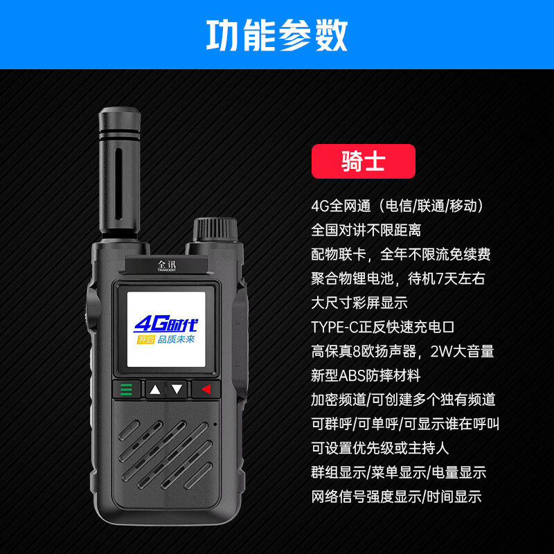 商品名称: 全讯(TRANCENT)全国通学生对讲机远距离户外手台机器4G公网5000公里酒店工地车队家用呼叫器 新骑士号/个