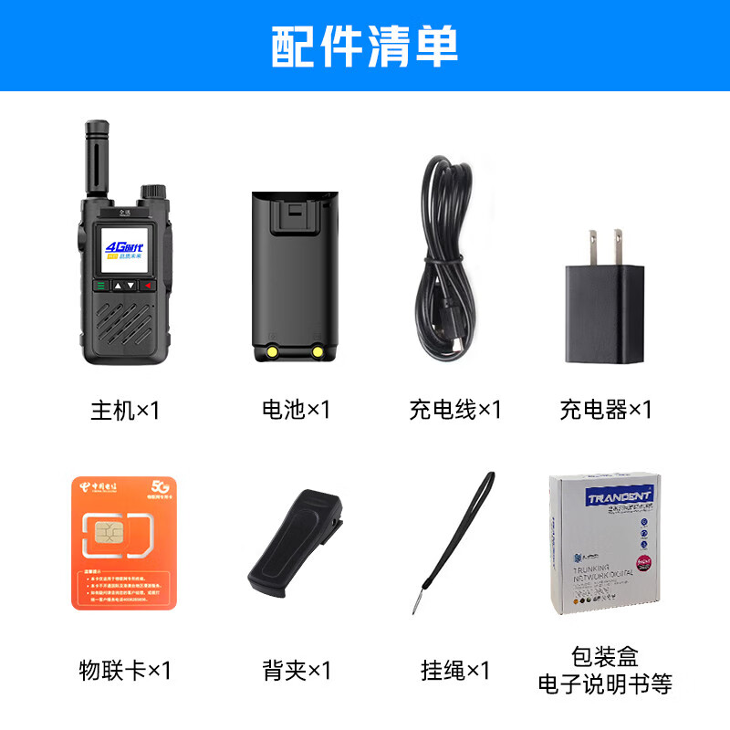 • 商品名称:全讯(TRANCENT)全国通学生对讲机远距离户外手台机器4G公网5000公里酒店工地车队家用呼叫器 新骑士号/个