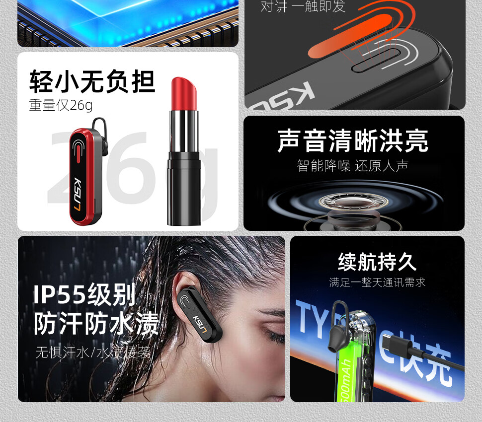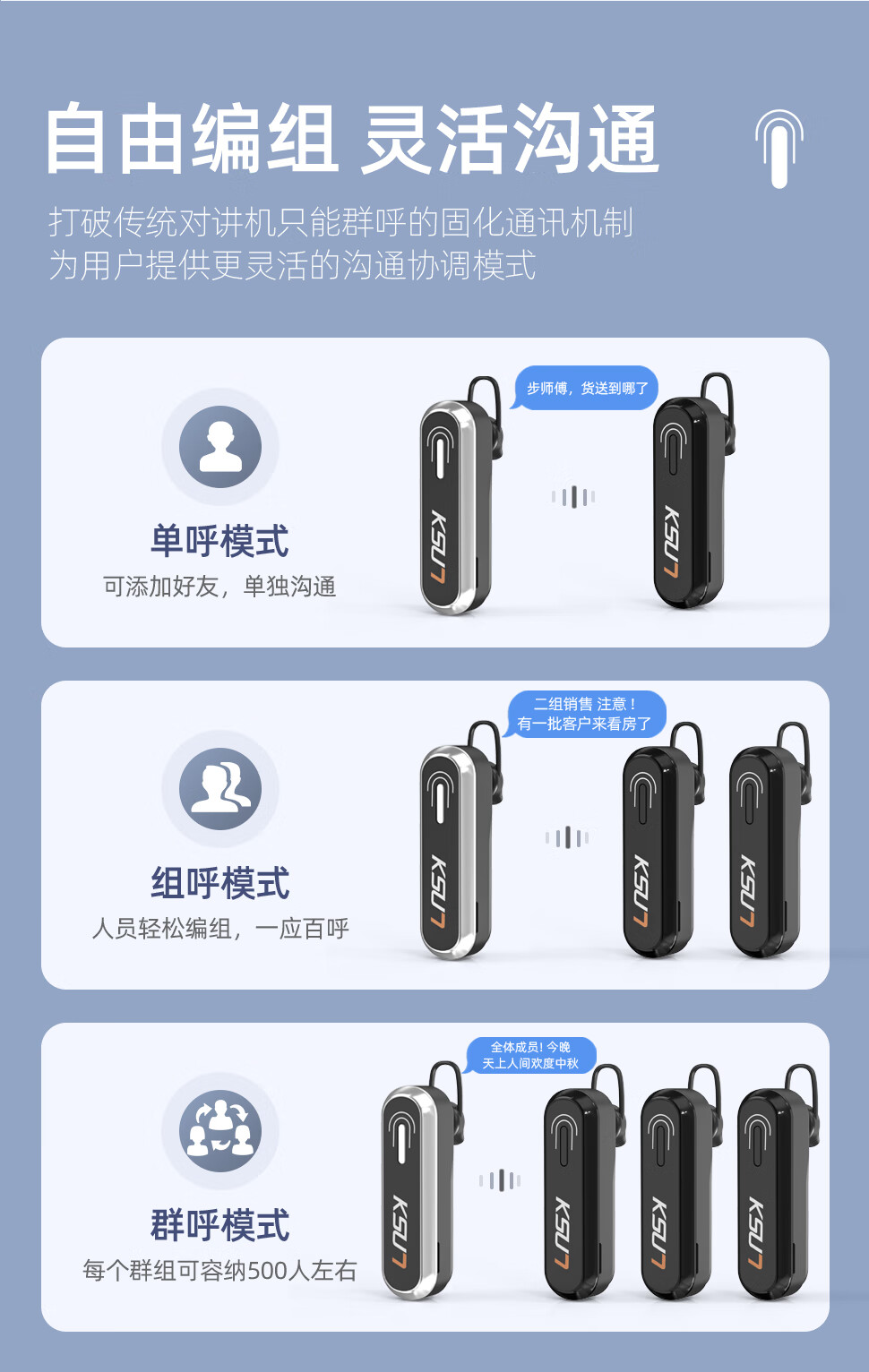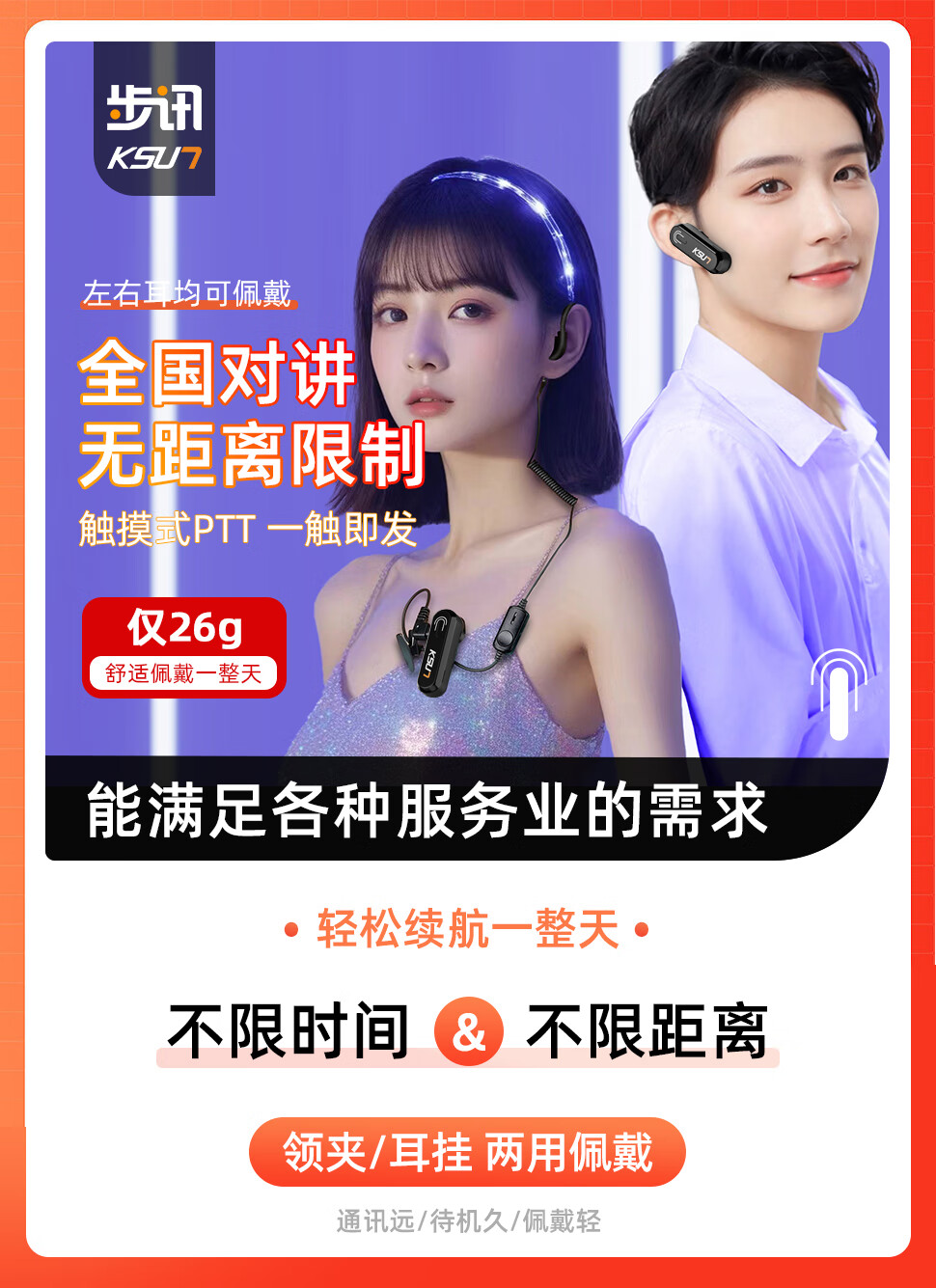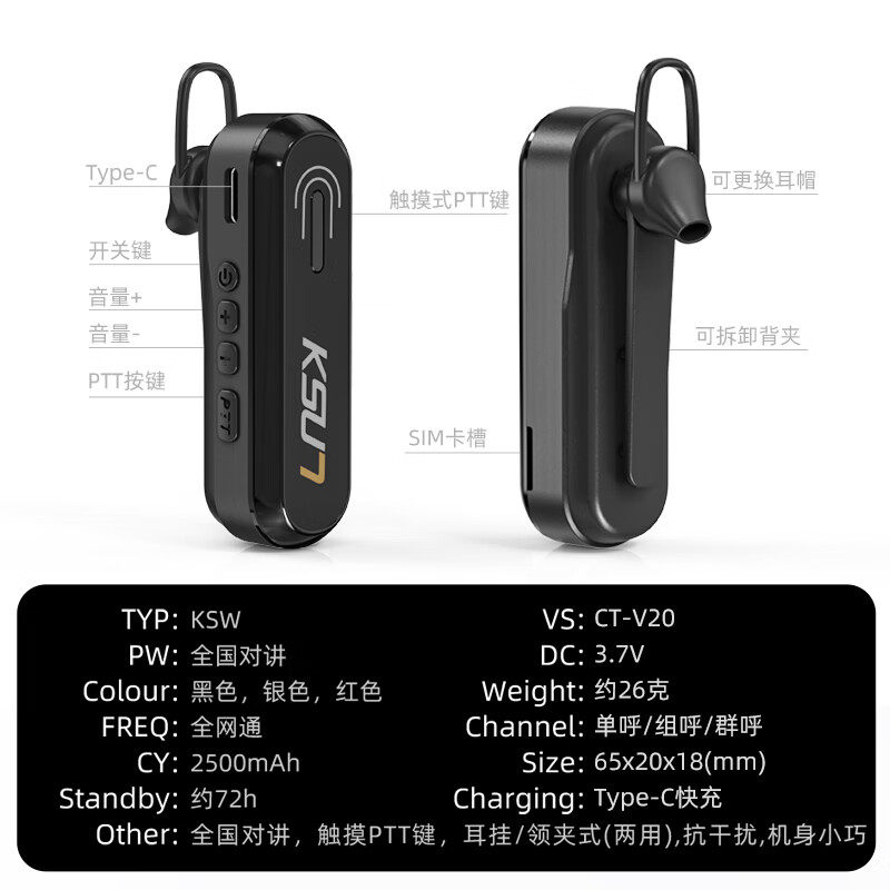 • 商品名称:KSUN TFSI步讯 全国对讲机远距离迷你小型微型耳挂式对讲机美容院餐厅酒店4S民用无线蓝牙触摸对讲CTV20 KSW/台