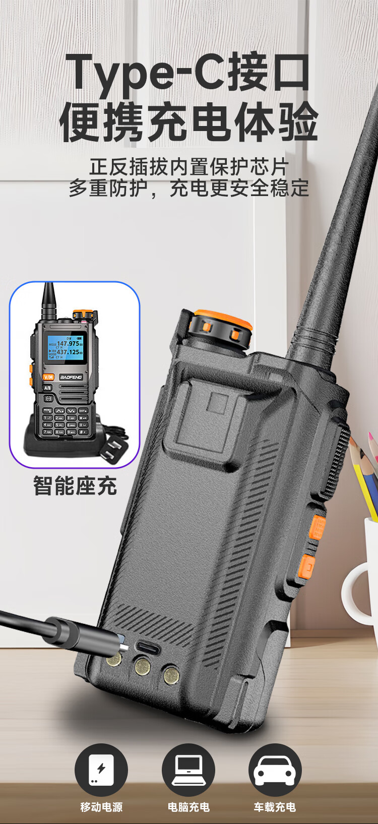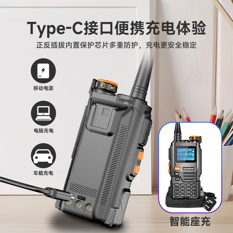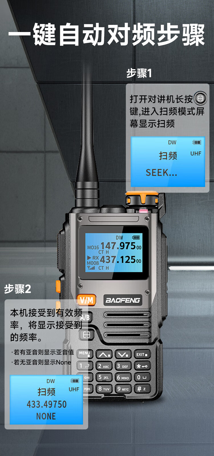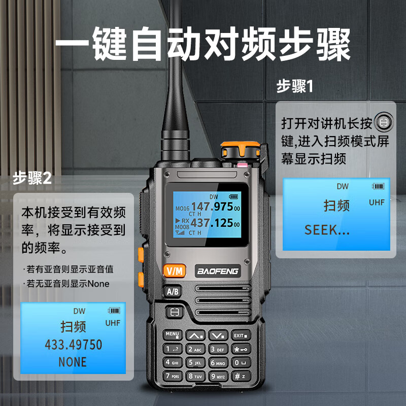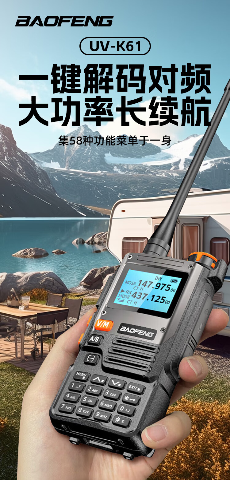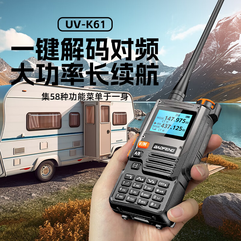 宝锋(BAOFENG)UV-K61 对讲机 一键对频 K6系列升级破码版 UV5R/5RH系列多频段航空频大功率远距离户外自驾手台 UV-K61/台