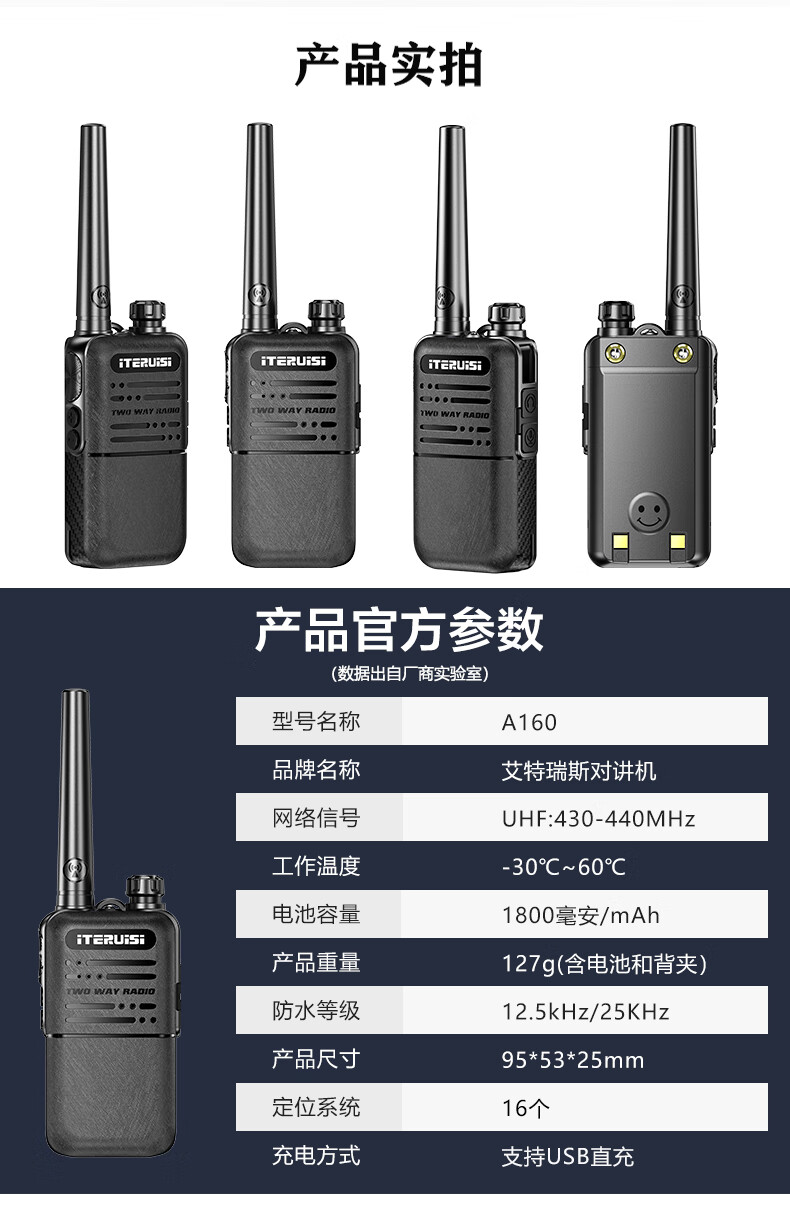 • 商品名称:艾特瑞斯(iteruisi)对讲机迷你型小巧轻薄音质清晰无杂音加密抗干扰酒店餐饮美容美发4s店户外手台 TB600+/台