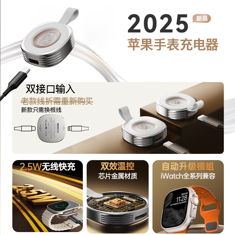 商品名称: remax【iwatch全系兼容】苹果手表充电器MagSafe磁吸手表充电适用AppleWatchS11/10/9/8/7/6/SE/Ultra3 睿量无线充/个