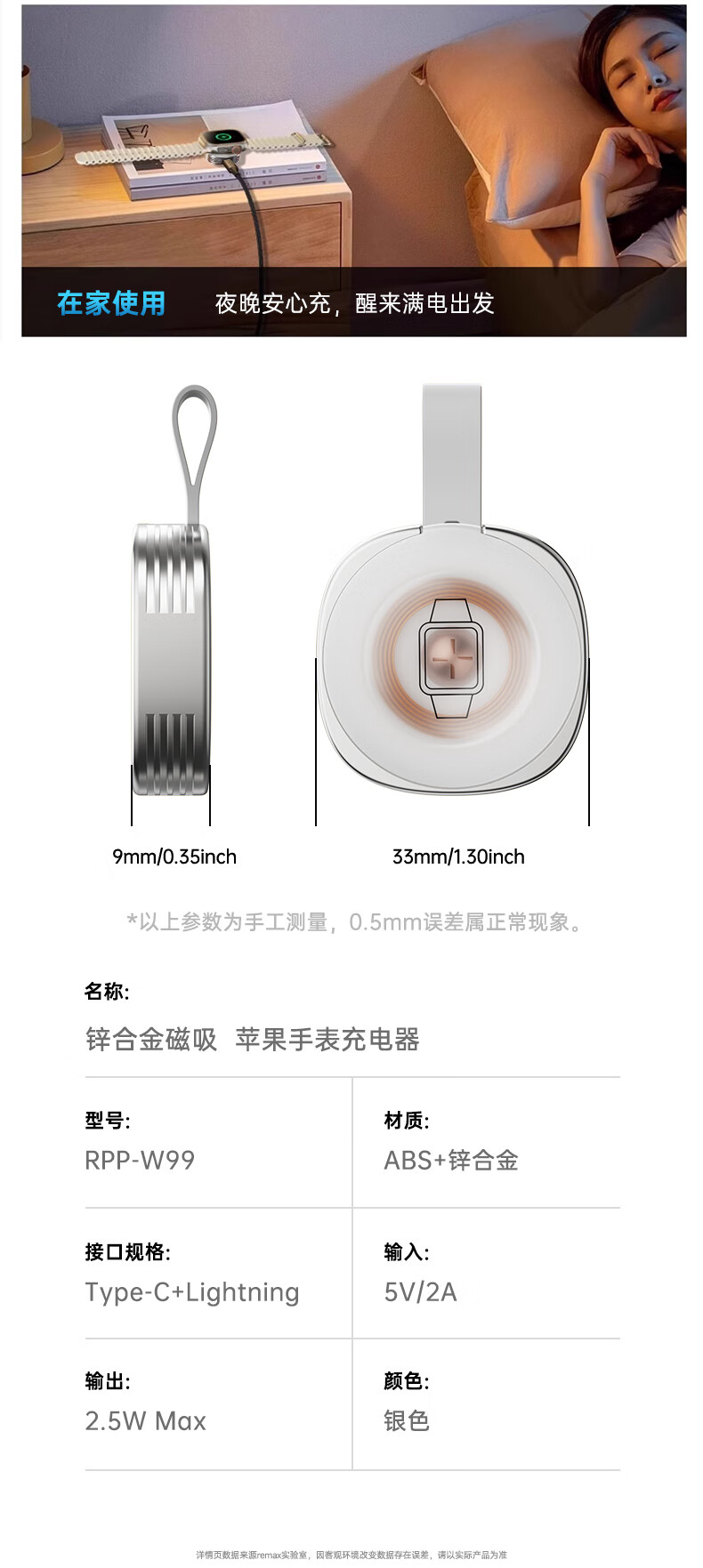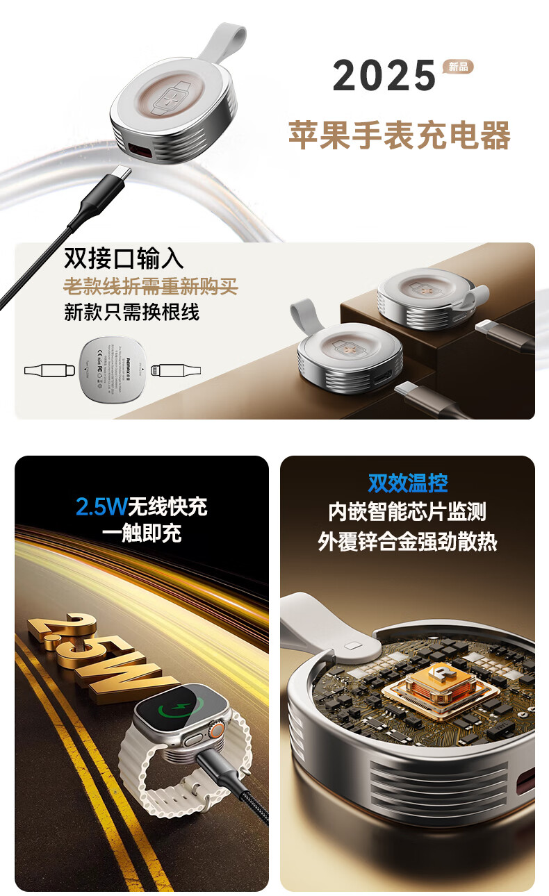 • 商品名称:remax【iwatch全系兼容】苹果手表充电器MagSafe磁吸手表充电适用AppleWatchS11/10/9/8/7/6/SE/Ultra3 睿量无线充/个