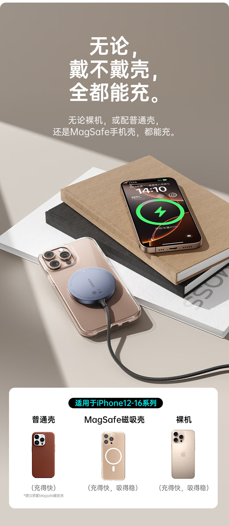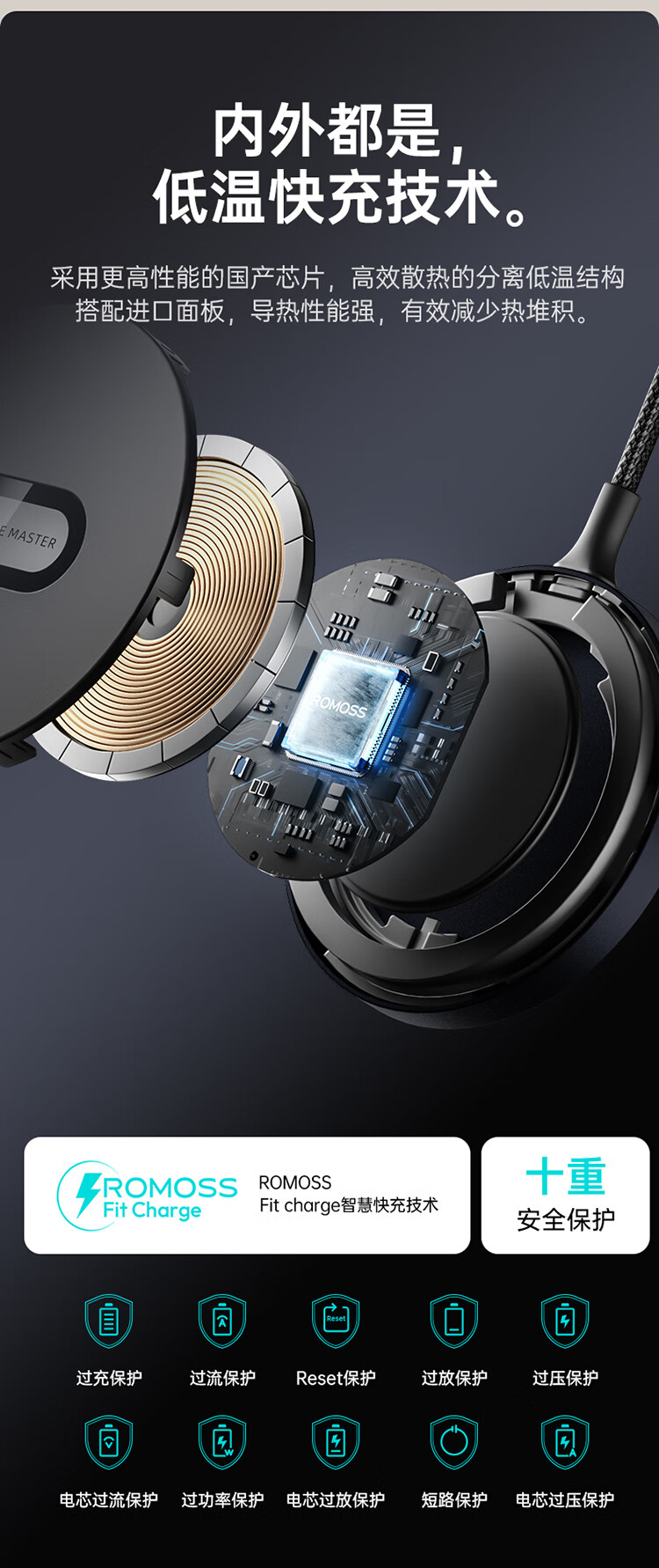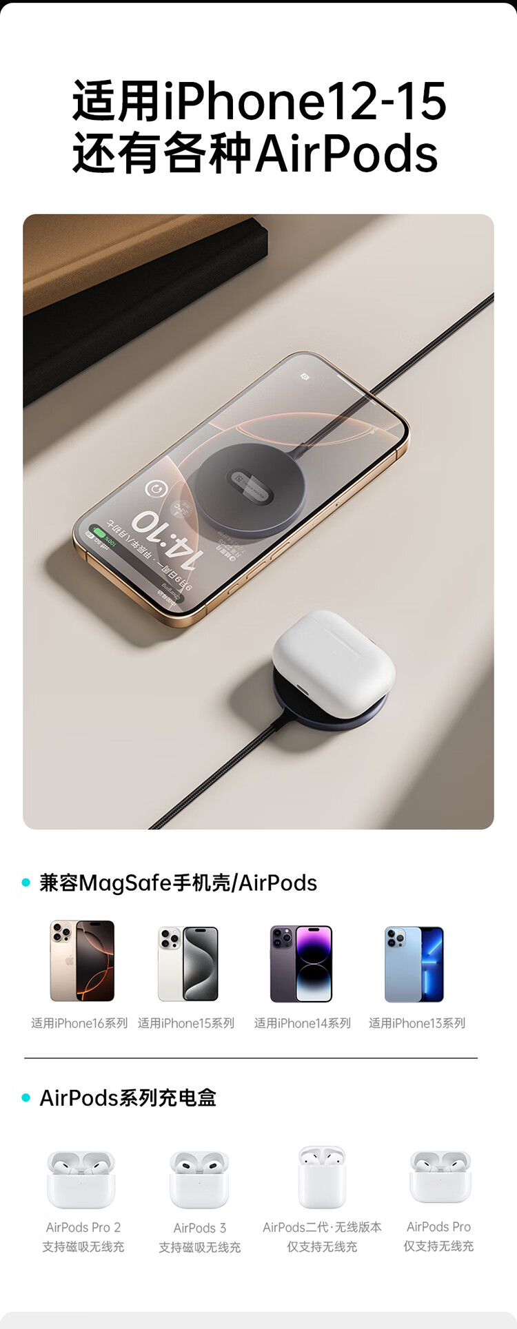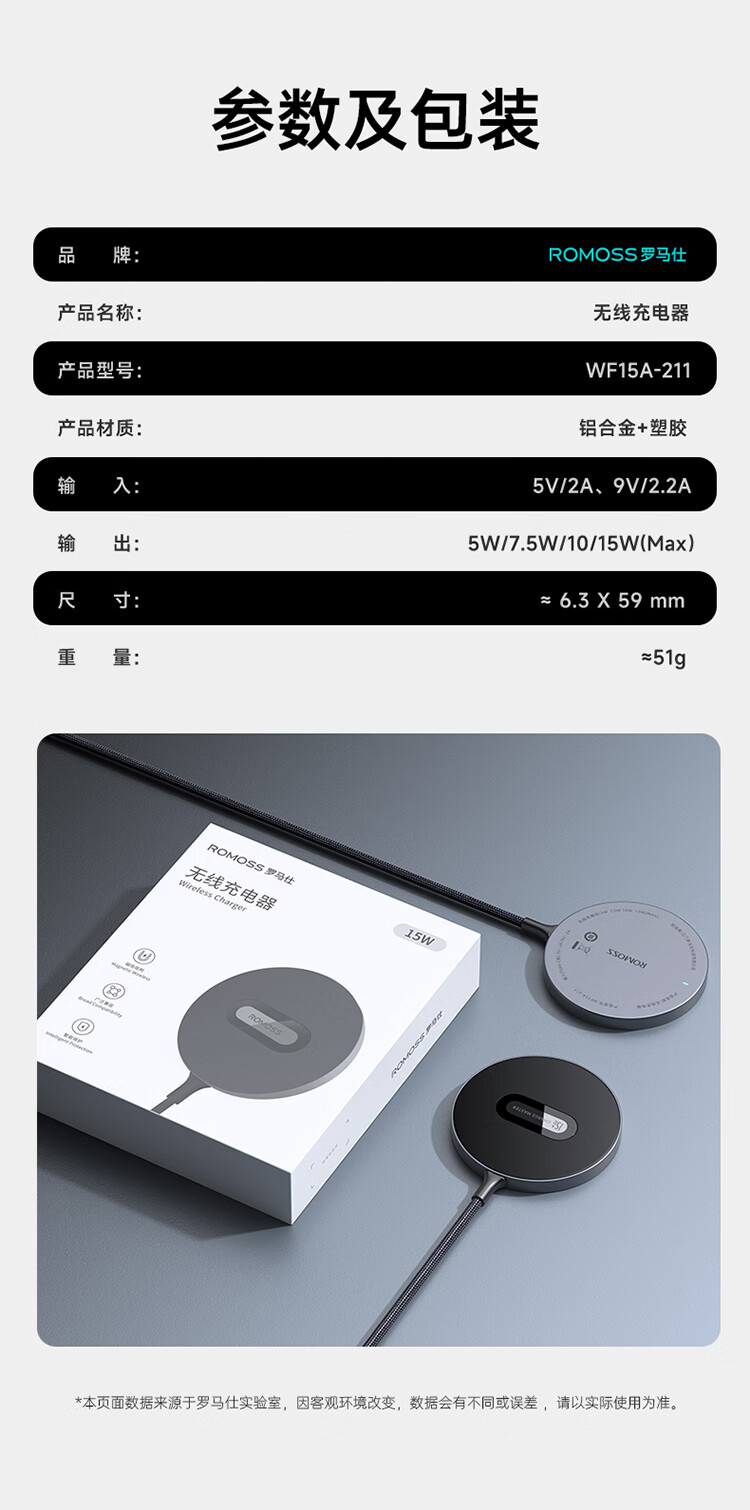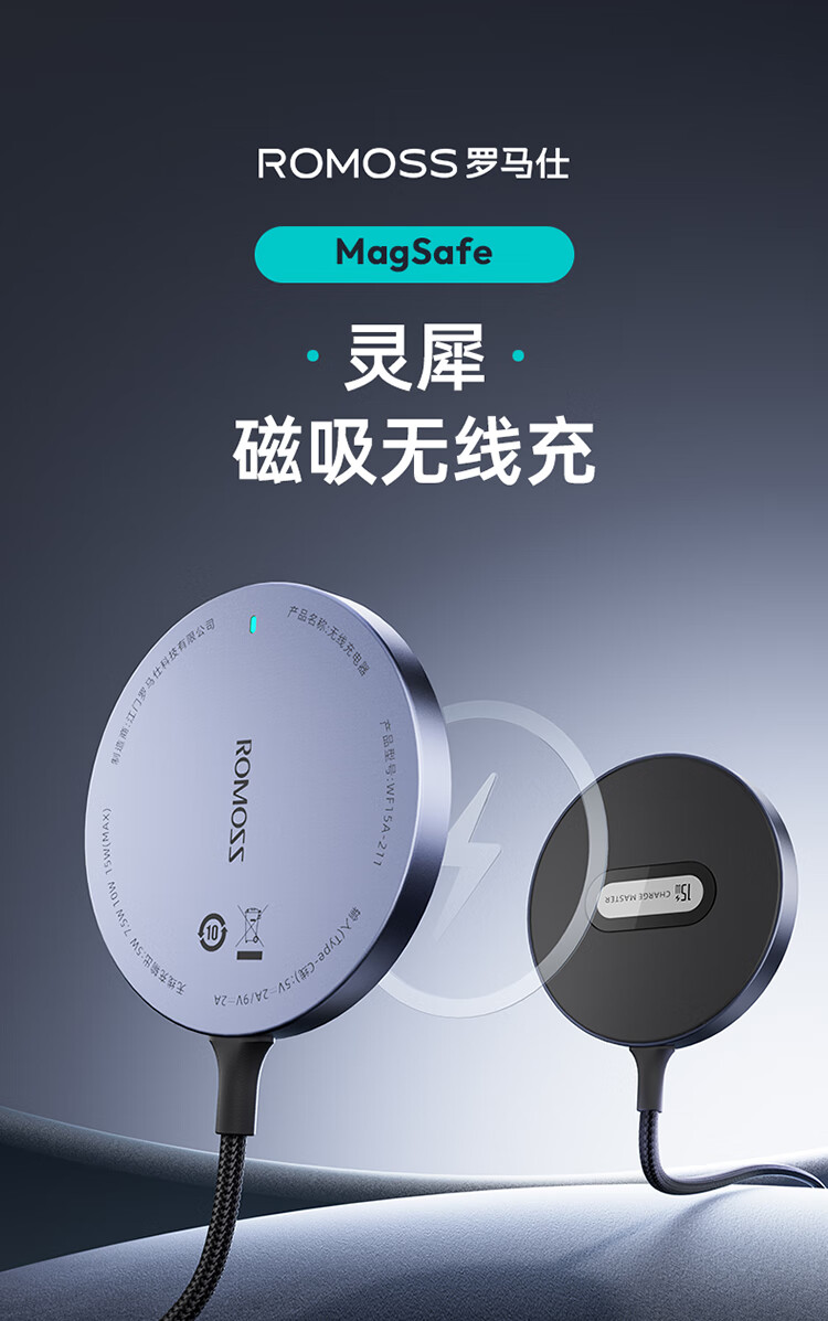 • 商品名称:罗马仕苹果无线充电器 支持MagSafe 磁吸快充iPhone15ProMax适用苹果14/13/PLUS耳机充电板华为荣耀小米 WF15A/包