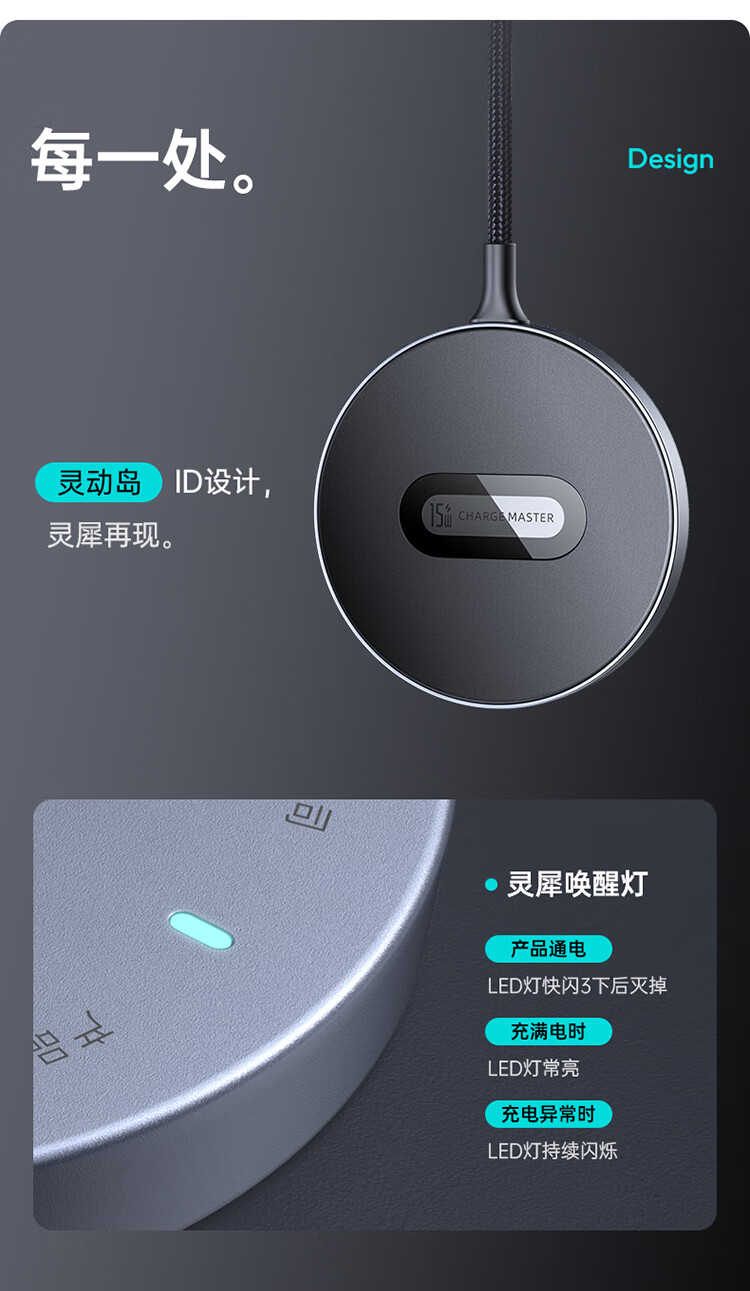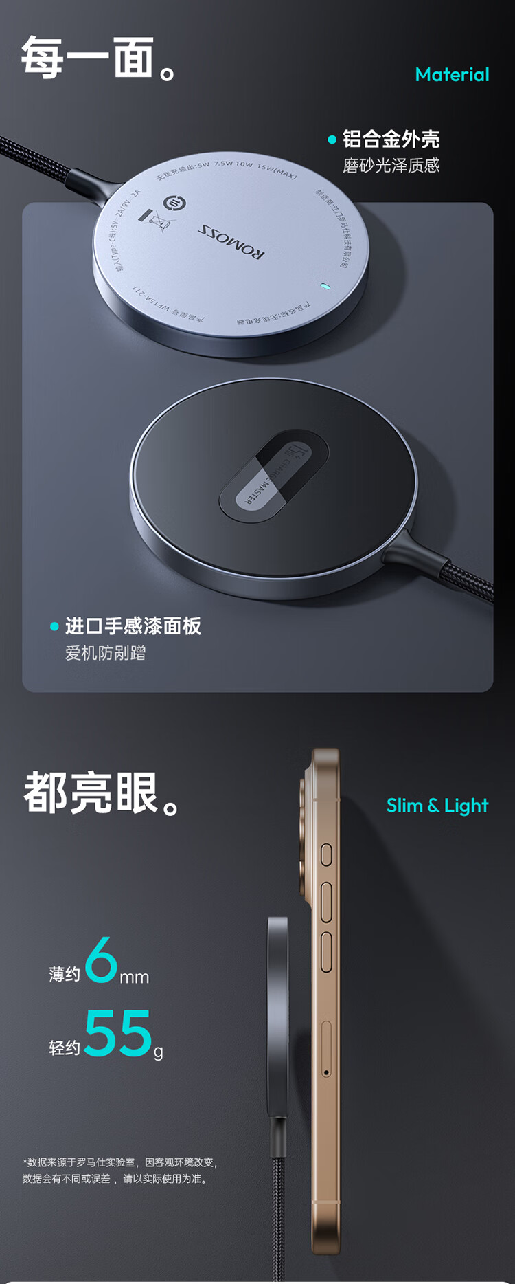包装清单: 罗马仕 Magsafe磁吸无线充电器15W(Max) 锖色*1