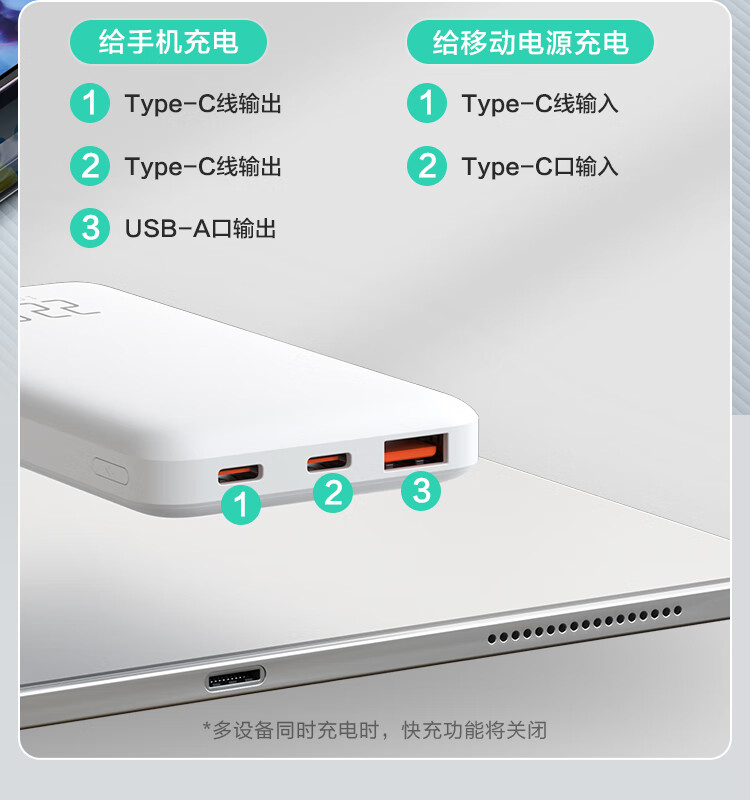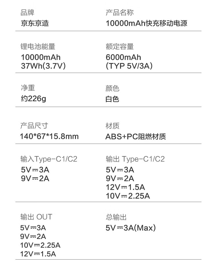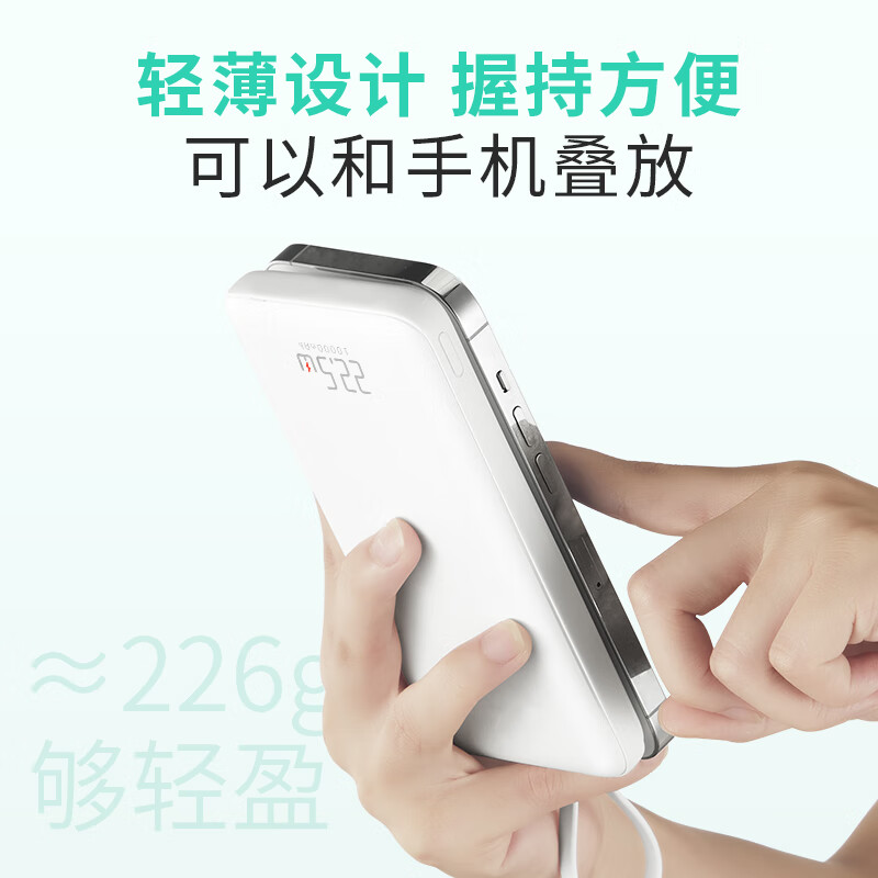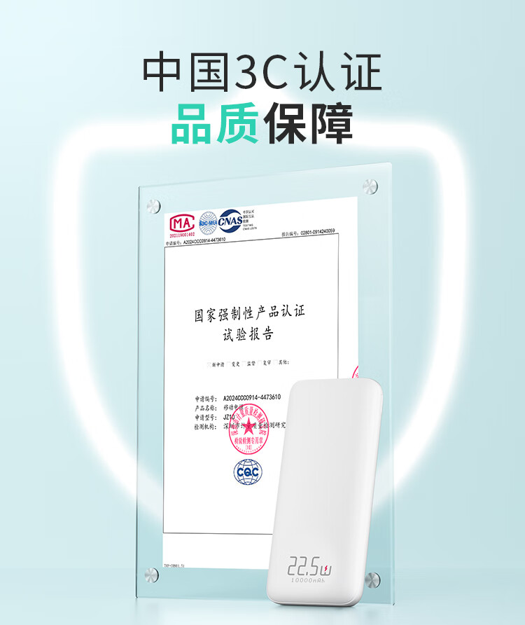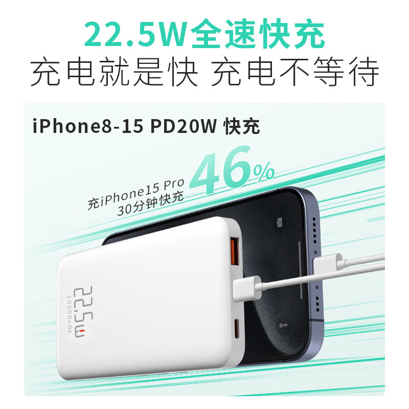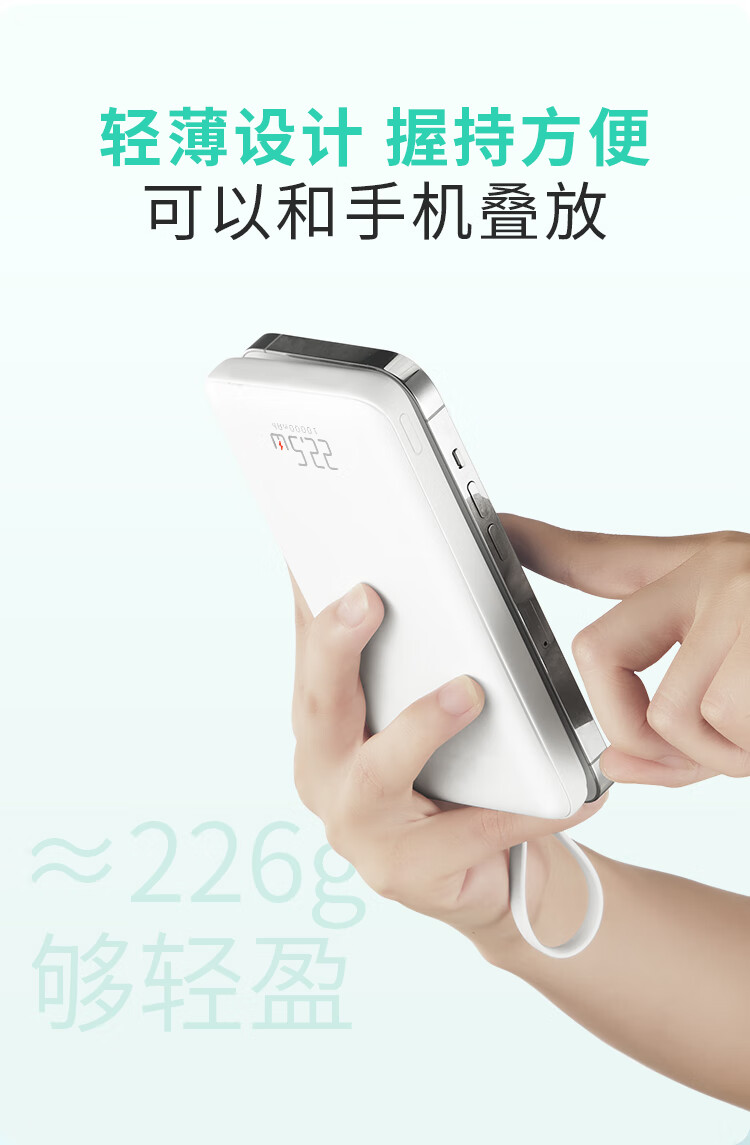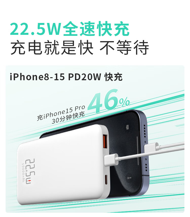 • 商品名称:京东京造22.5W超级快充轻薄便携充电宝10000毫安时3c认证可上飞机京东自营移动电源适用苹果17华为小米荣耀 JZ10/个