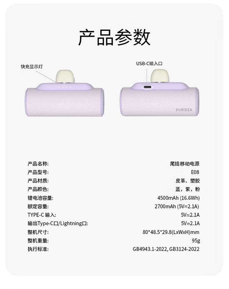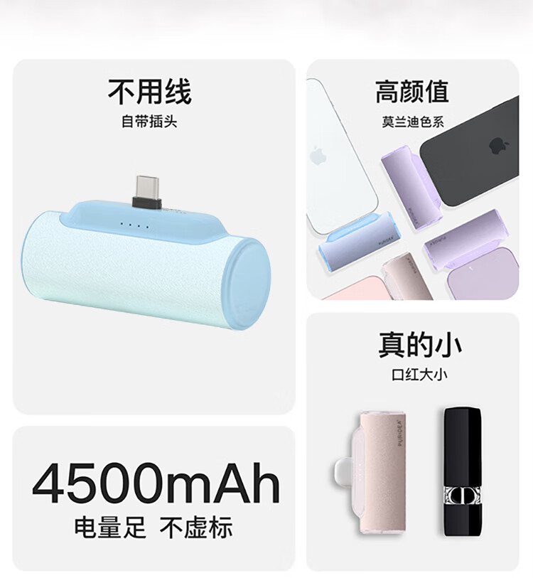 • 商品名称:大耳狐【3C认证】胶囊充电宝自带插头超迷你小巧便携应急移动电源 Type-C插口 蓝色 E08/个
