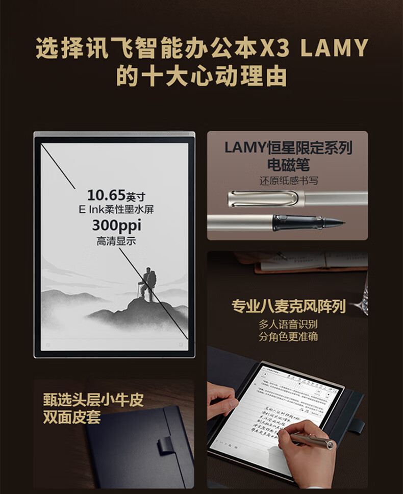 商品名称: 科大讯飞智能办公本X3 LAMY联名款 10.65英寸 手写笔记本电纸书 电子书阅读器 墨水屏平板电脑 X3 LAMY/个
