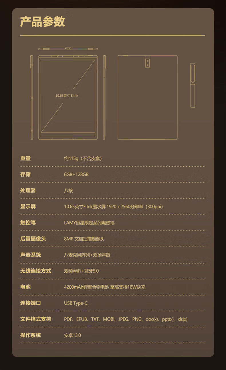 • 商品名称:科大讯飞智能办公本X3 LAMY联名款 10.65英寸 手写笔记本电纸书 电子书阅读器 墨水屏平板电脑 X3 LAMY/个