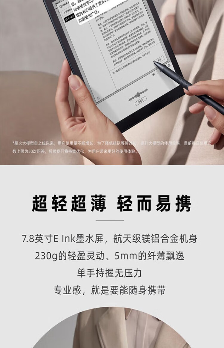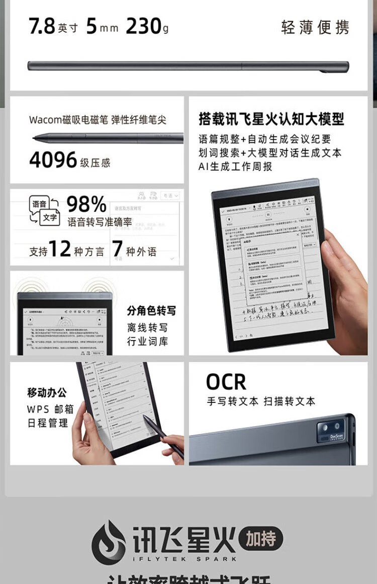 • 商品名称:科大讯飞(iFLYTEK)智能办公本Air Pro 7.8英寸电子书阅读器 墨水屏记录电子笔记原装配件 Air/Air2/T2原装电磁笔 智能办公本Air Pro/台