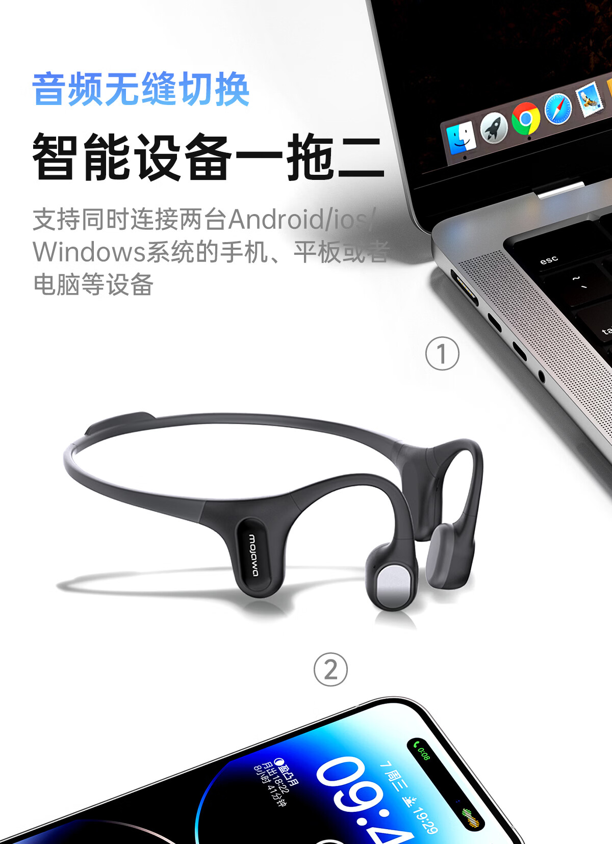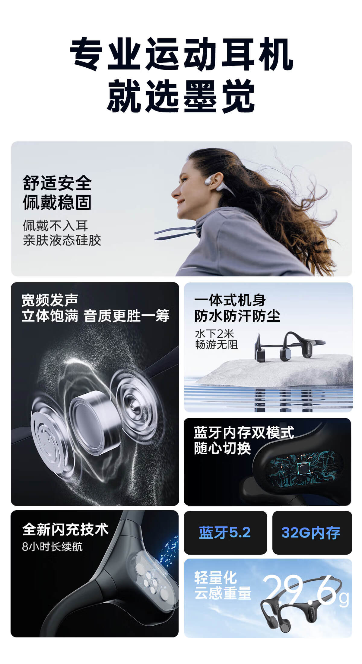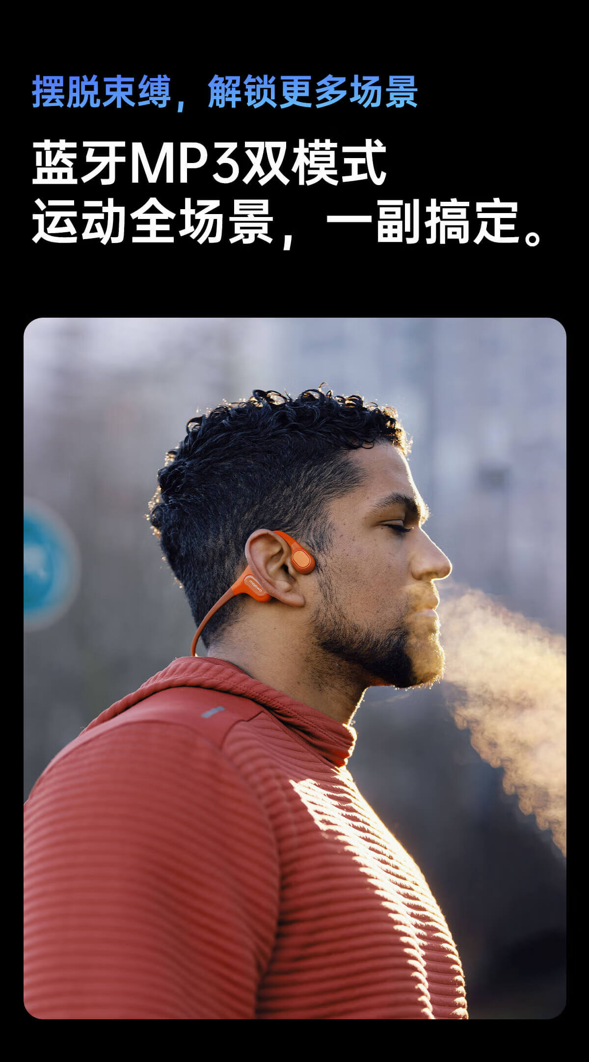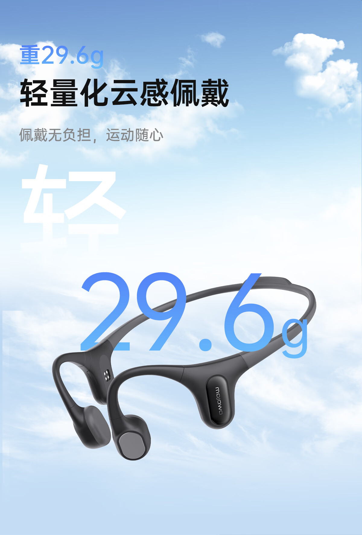• 商品名称:墨觉(MOJAWA)Run plus骨传导无线蓝牙耳机 开放式不入耳运动耳机 游泳登山马拉松跑步骑行智能降噪长续航暮云灰 RunPlus/台