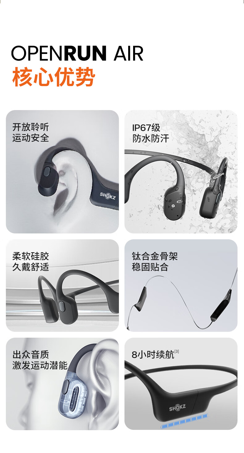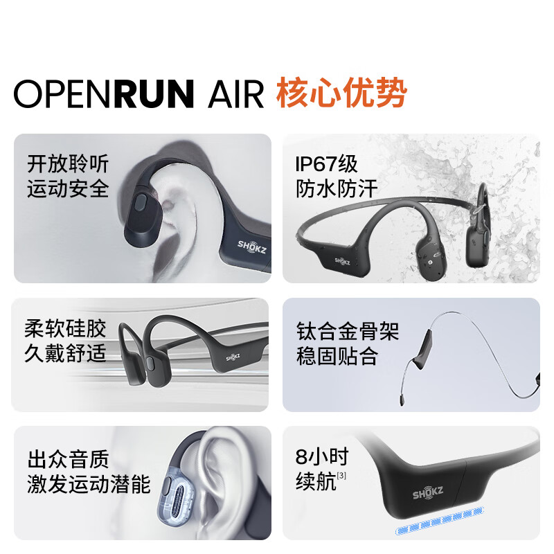 • 商品名称:韶音(SHOKZ)OpenRun Air S803骨传导耳机开放式运动跑步超长续航无线蓝牙耳机 石墨黑 S803/台
