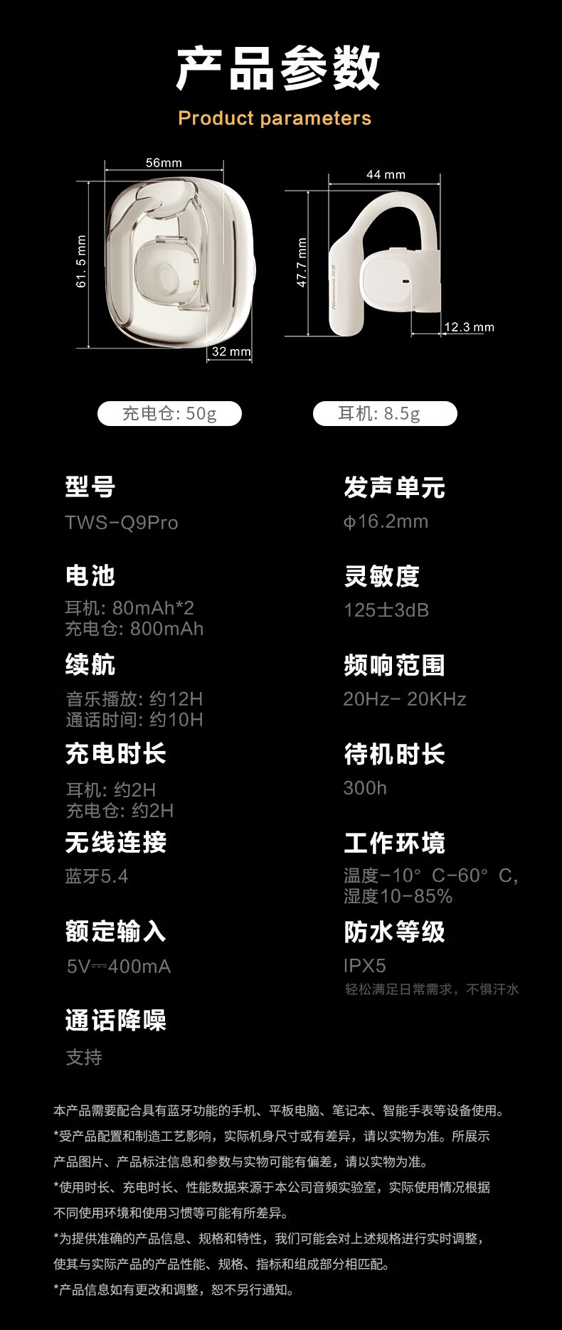 商品名称: 纽曼 Q9骨传导概念开放式蓝牙耳机无线【柏林之声】不入耳挂耳式运动跑步长续航通话降噪适用苹果华为 TWS-Q9/个