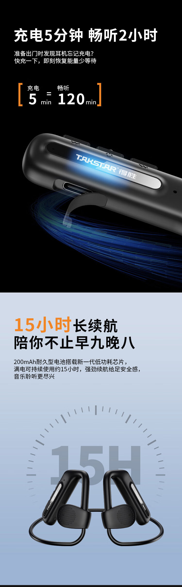 数码  > 影音娱乐  > 蓝牙/无线耳机  >  得胜/TAKSTAR  >  得胜(TAKSTAR)LA200W 开放式无线耳机 复合膜单元 3种音效模式 急速快充 防水长续航 音乐鉴赏户外运动 只 LA200W/台