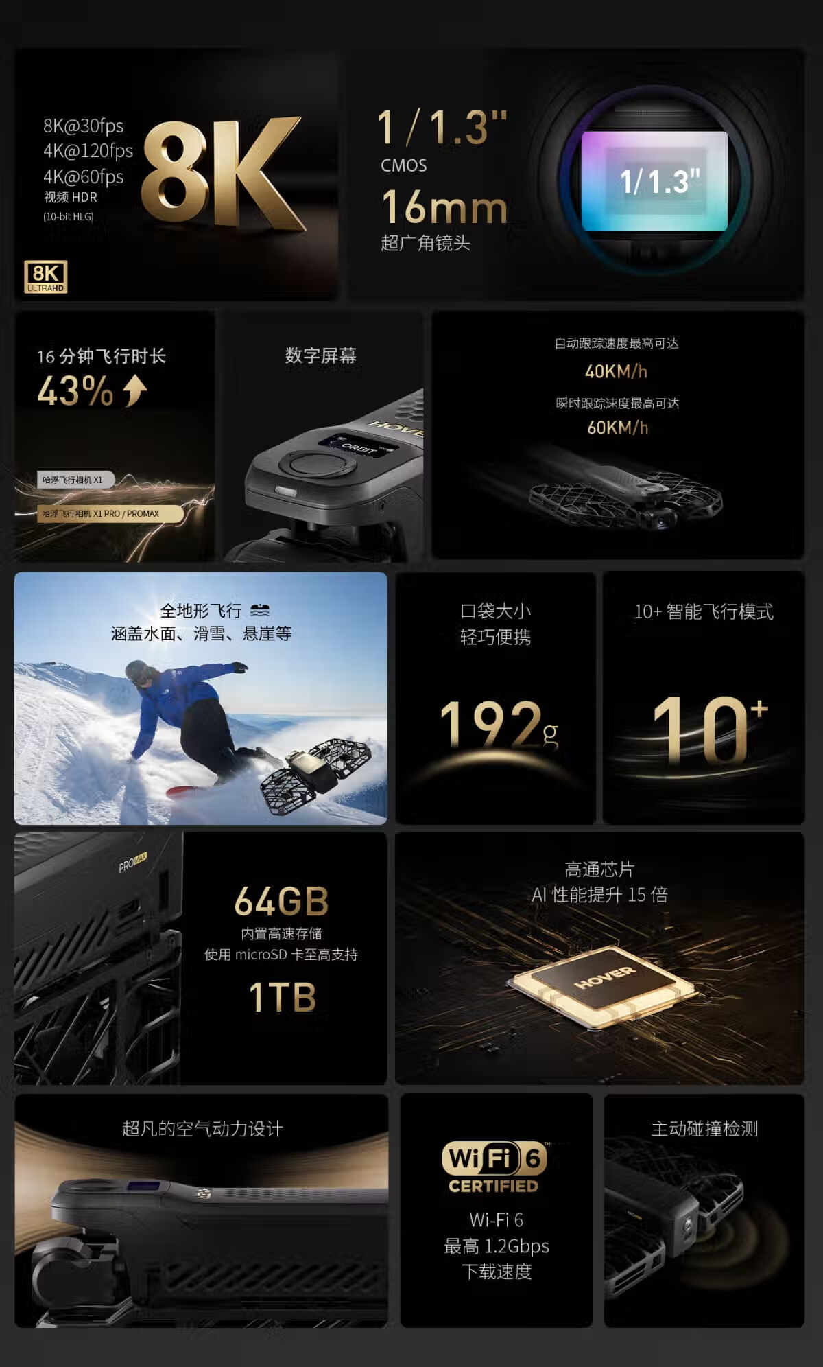 • 商品名称:HOVER CAMERA哈浮运动飞行相机X1 PRO畅飞套装AI智能跟拍4k高清航拍无人机掌上vlog可折叠户外旅游防抖遥控飞机 X1 PRO/套