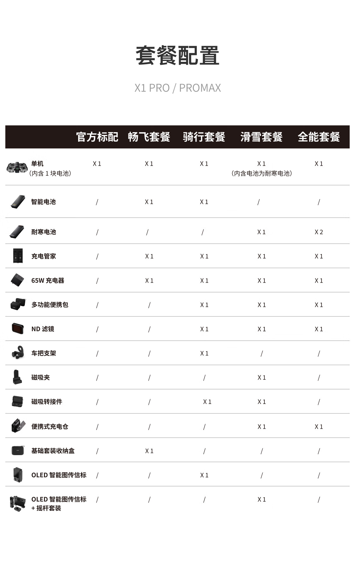 包装清单: 标准版单机(含智能电池*1),智能电池*1,充电管家*1,充电头*1,收纳盒*1