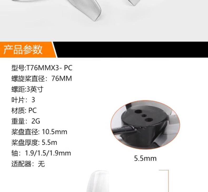 商品名称: AXISFLYINGHQProp DT76MMX3(2正2反)3寸穿越机桨叶 涵道机 高效率竞速桨叶 灰色 BLITZ 1.6W VTX/个