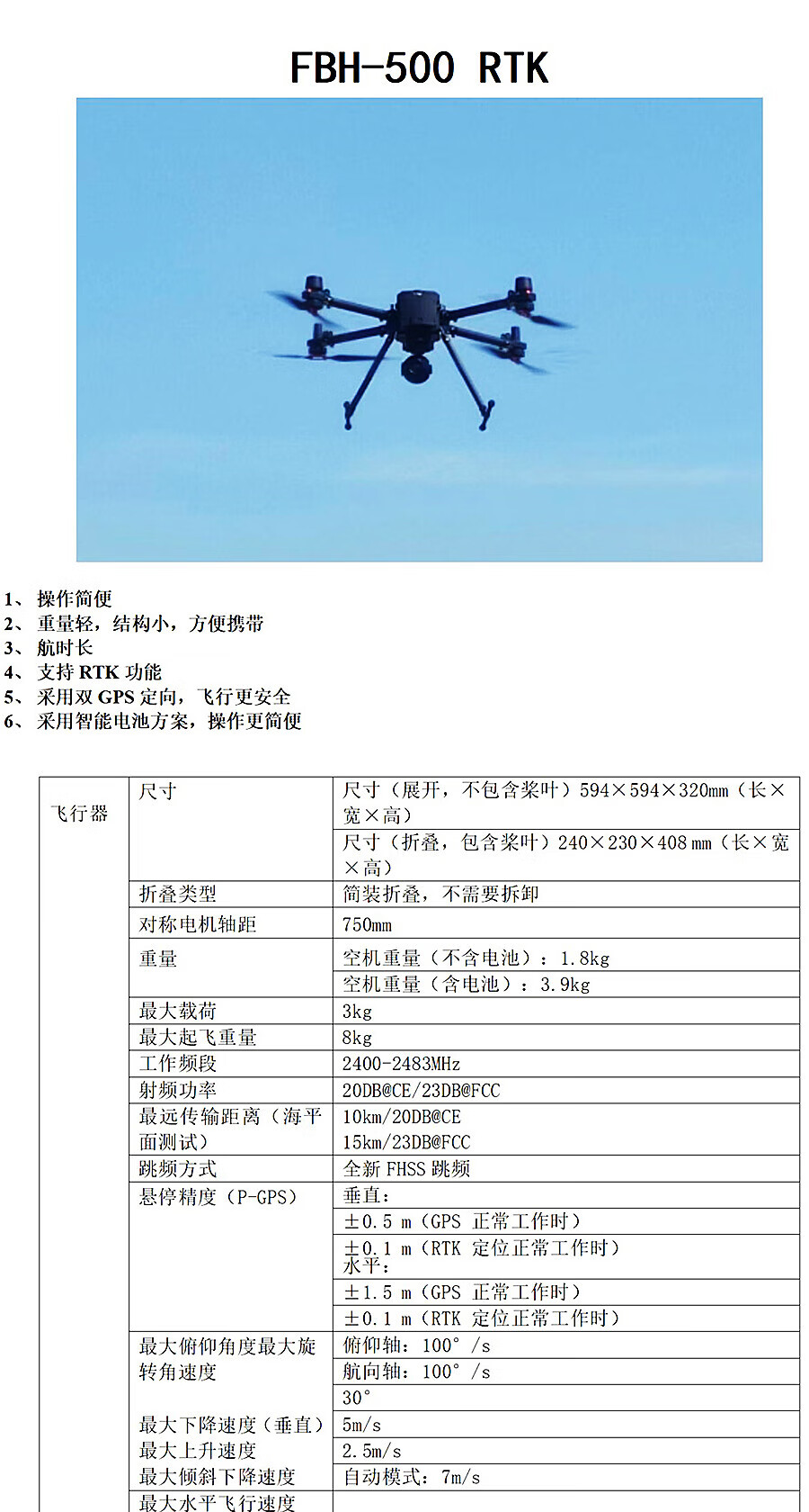 商品名称: FBH 丰宝恒 FBH-500RTK 四旋翼长航时支持RTK安防巡检行业应用无人机 FBH-500RTK/台