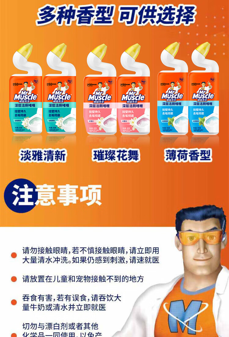 • 商品名称:威猛先生(Mr Muscle)洁厕灵 750g*4瓶 柠檬草香 洁厕剂 洁厕液厕所马桶除垢去渍去异味 深层净力洁厕啫哩(柠檬草香)750g*4/组