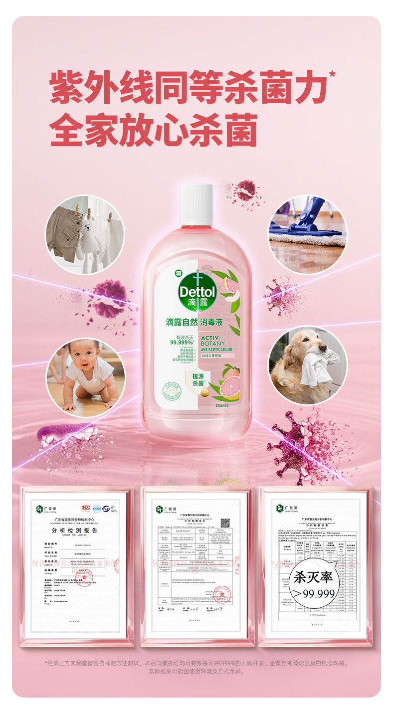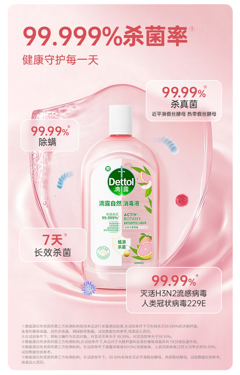 滴露(Dettol)衣物消毒液自然香氛洗衣清洁杀菌除螨除臭48H留香1000ml甲流感 滴露自然消毒液1L/瓶